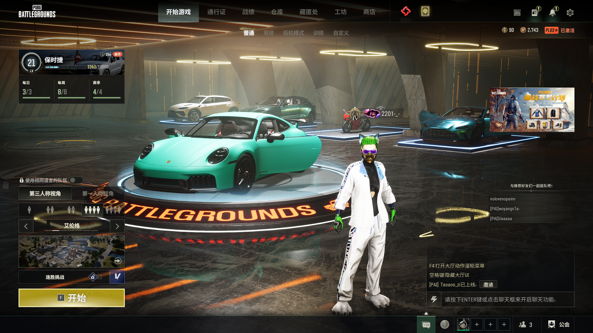 - 第三人称四排段位: 无