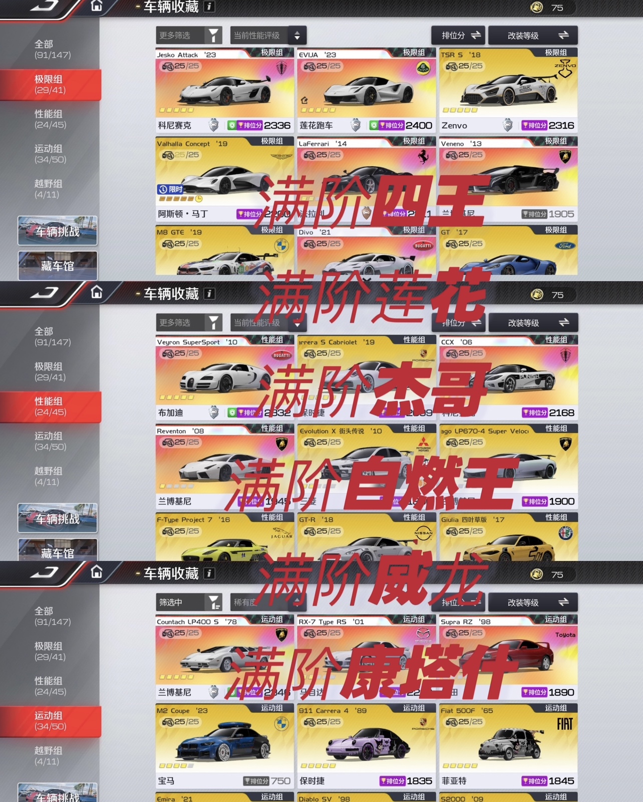 【苹果】 周年庆四王全珍藏✨满阶满改电莲花/杰哥✨满阶威龙/满阶康塔什✨满阶自然王⭐各组t0头车