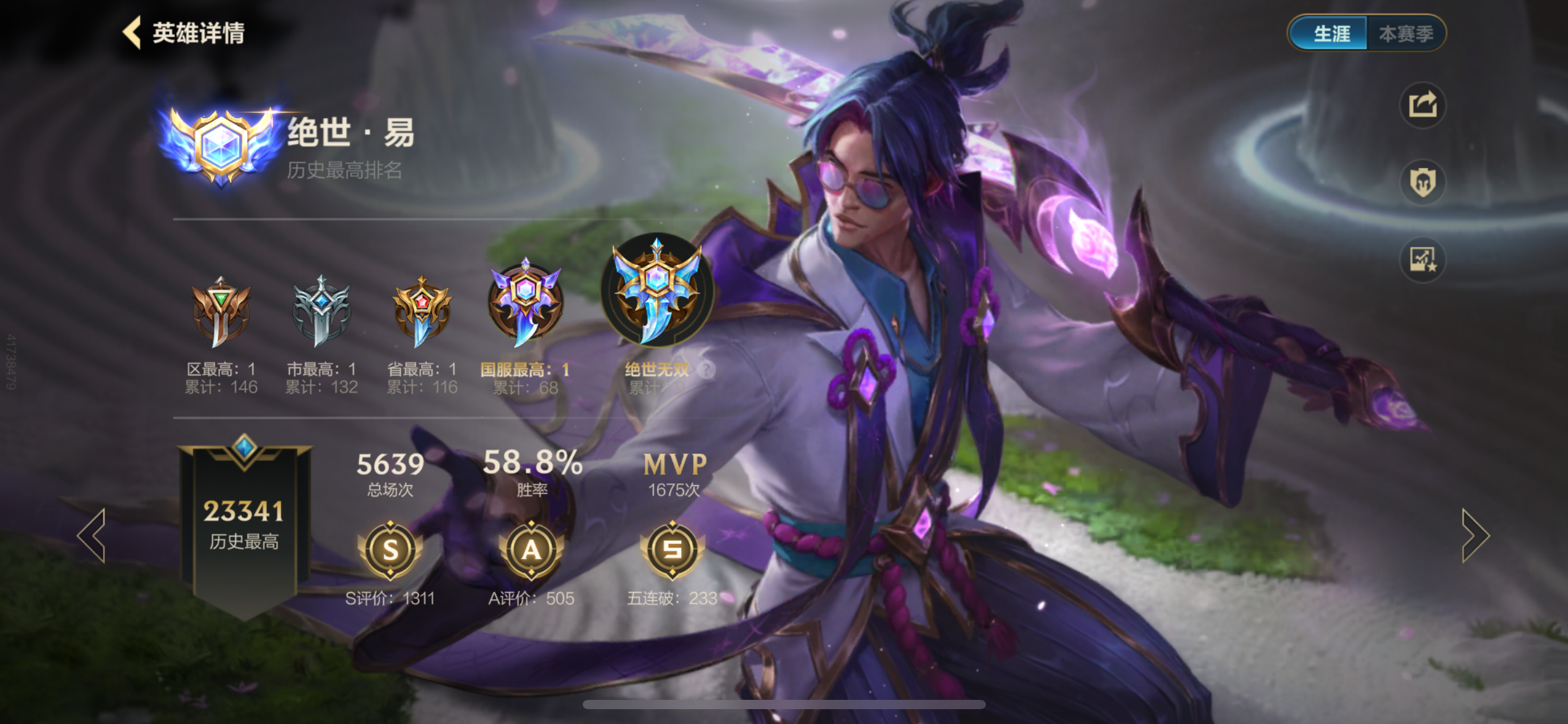 【苹果】 【魂】在榜绝世称号剑圣✨历史2.3w分国一绝世剑圣✨128英雄129皮翡翠段可排✅