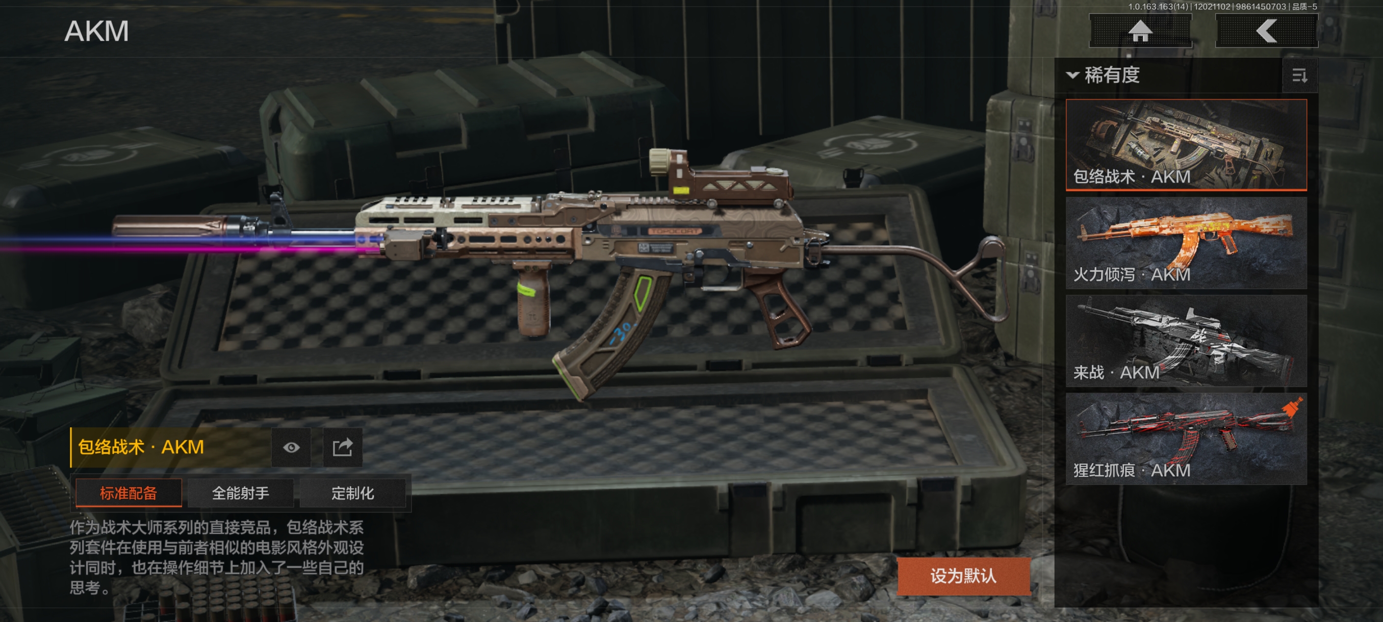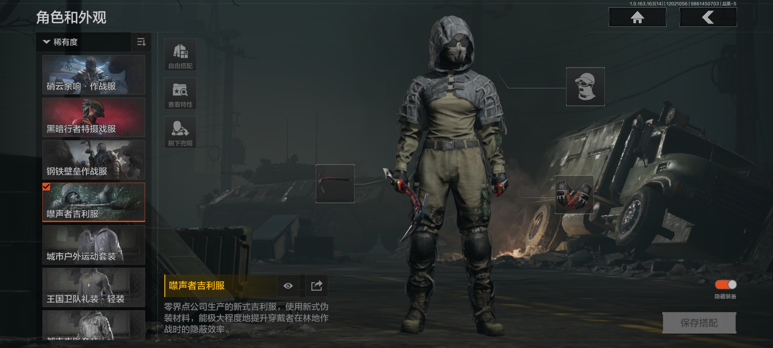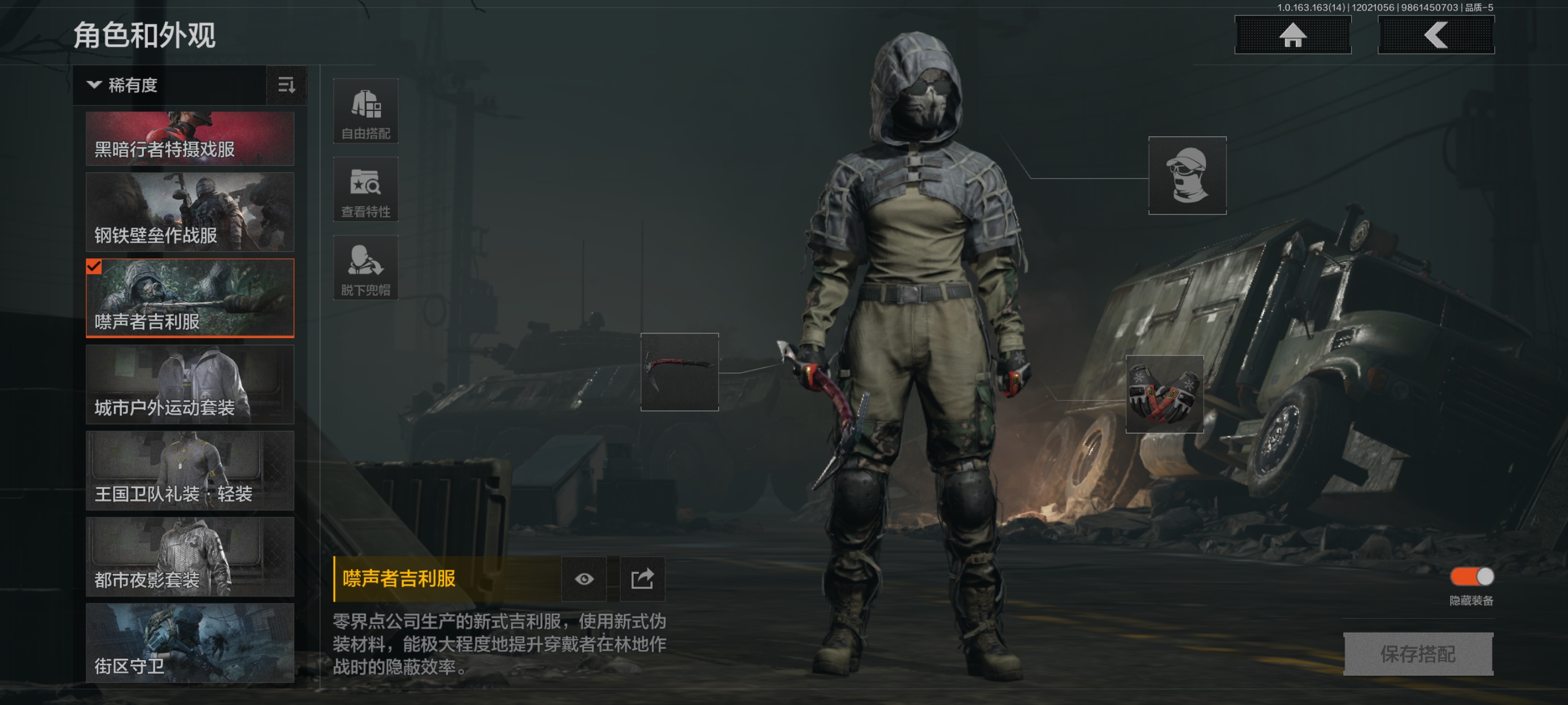 30级,历史最高段位:暗区传说【近战武器】:瀚星斩铁,涂鸦利刃,胜利军刀,冬日冰镐,精英指虎,突击匕首,工兵铲,来战开山刀;【角色皮肤】:硝云余响作战服,黑暗行者特摄戏服,钢铁壁垒作战服,噤声者吉利服,城市户外运动套装,王国卫队礼装轻装,都市夜影套装,街区守卫;【手套】:噤声者作战手套,冬日手套;【突击步枪】:包络战术AKM,火力倾泻AKM,猩红抓痕AKM,来战AKM,潜渊蛇鳞M4A1,骤羽尖啸M4A1,特遣小队M4A1,战术大师M4A1,德尔塔小队M4A1,竞技M4A1,黑金国际M4A1,竞技FAL,真实之眼FAL,历战FAL,秋宴FAL,自喷网格H416,逆火MDR,竞技MDR,鱼跃丹青AK102,玄墨披挂AK102,洞窟遗迹AK102,来战AK74N,山地伪装AK74N,棱光裂变AK74N,白狼连队AK74N,骑士之剑AKS74U,最后防线AKS74U,火绒AKS74U,坚守AKS74U,龙影AKS74U,竞技AUG,火力倾泻AUG,铁火战痕AUG,雪山之王F2000,炎夏浪花AR57,骑士之剑ACE31,旗帜AEK,壁垒AN94,粉绒臻选AN94,绿松石数码Groza,虎纹Groza,铁火战痕FAMAS,幻象FAMAS,虎纹FAMAS,深水浴池FAMAS,青瓷涂层SCAR,绿海猎手SCAR,森林迷彩T951,绿松石数码T951,青瓷涂层T951,巡林客T951,百锻寒芒T951,飞鲨T951,沙漠数码T03,虎纹T03,利齿风暴T03,百锻寒芒T03,玄戈梨花T03,深潜T03,林地数码T03,北国内卫AK12,沙海AK12,骤羽尖啸AK12,沙海MCX,鱼跃丹青MCX,旧王圣谕QBZ191,绿松石数码9A91,绿海猎手AR15;【冲锋枪】:空勤特遣MP5,火力倾泻MP5,森林迷彩MP5,猩红抓痕MP5,深粉玫瑰MP5,利齿风暴MPX,激流MPX微型冲锋枪,青瓷涂层MPX,雪山之王MPX,星云火花P90,冬日精灵P90,绿海猎手P90,洞窟遗迹UZI,自喷网格UMP45,滑雪季UMP45,洞窟遗迹UMP45,玄墨披挂MAC10,殷红渐变MAC10,多边棱彩MAC10,利齿风暴T79,镀铬寒铁T79,沙色Vector45,绿松石数码T85,山地伪装Vector9,洞窟遗迹Vector9,龙影Suomi,滑雪季Suomi,战术大师Suomi,绿海猎手CPW,醒目提示MP5K;【射手步枪】:旗帜SVDS,猩红羽翼VSS,钢铁数码VSS,典礼武备MK14,旗帜脉冲M110,绿海猎手M110,缟兵玄墨M110,全地形数码M110,绿松石数码DBR,鱼跃丹青QBU191,绿松石数码QBU191;【栓动步枪】:白垩游魂莫辛,棱光裂变莫辛,滑雪季莫辛,轰炸小子AX50,骑士之剑SJ16,战术大师SJ16,深粉玫瑰SJ16,绿松石数码SJ16;【轻机枪】:壁垒RPK16,旗帜RPK16,战术大师RPK16,怒火重燃RPK16,虎纹M249,猩红抓痕M249,多边棱彩M249;【霰弹枪】:绿海猎手M870,多边棱彩M870,玄墨披挂MP133,典礼武备S12K,沙海S12K,醒目提示S12K,胜利S12K,无畏USAS12,沙海USAS12,真实之眼SPR310,四色花DP12,火漆DP12,雪原凌锋DP12;【卡宾枪】:绿松石数码SKS,绿海猎手M14,多边棱彩M96,绿海猎手Mini14,滑雪季BM59,洞窟遗迹BM59,虎纹BM59;【手枪】:涂鸦G18C,午夜梦魇G18C,绿松石数码沙漠之鹰,洞窟遗迹沙漠之鹰,青瓷涂层T05,滑雪季F57,水蓝F57,深潜F57,灰白回纹M300,猩红抓痕M300;