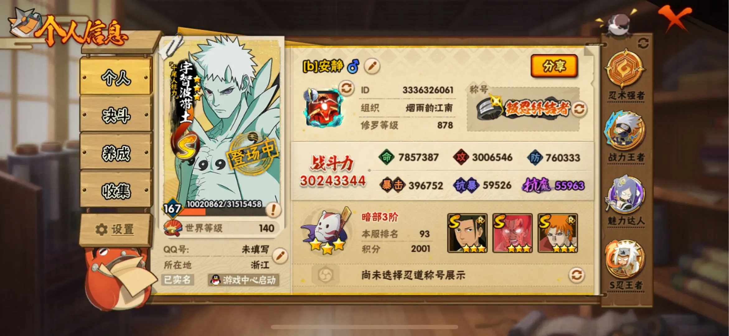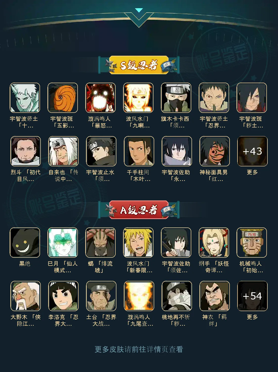 3100w战力/56S/65A/340忍者/除本赛季斑外全忍法帖/熊猫螃蟹/黑绝/新春鼬/新春水门/泳装小南