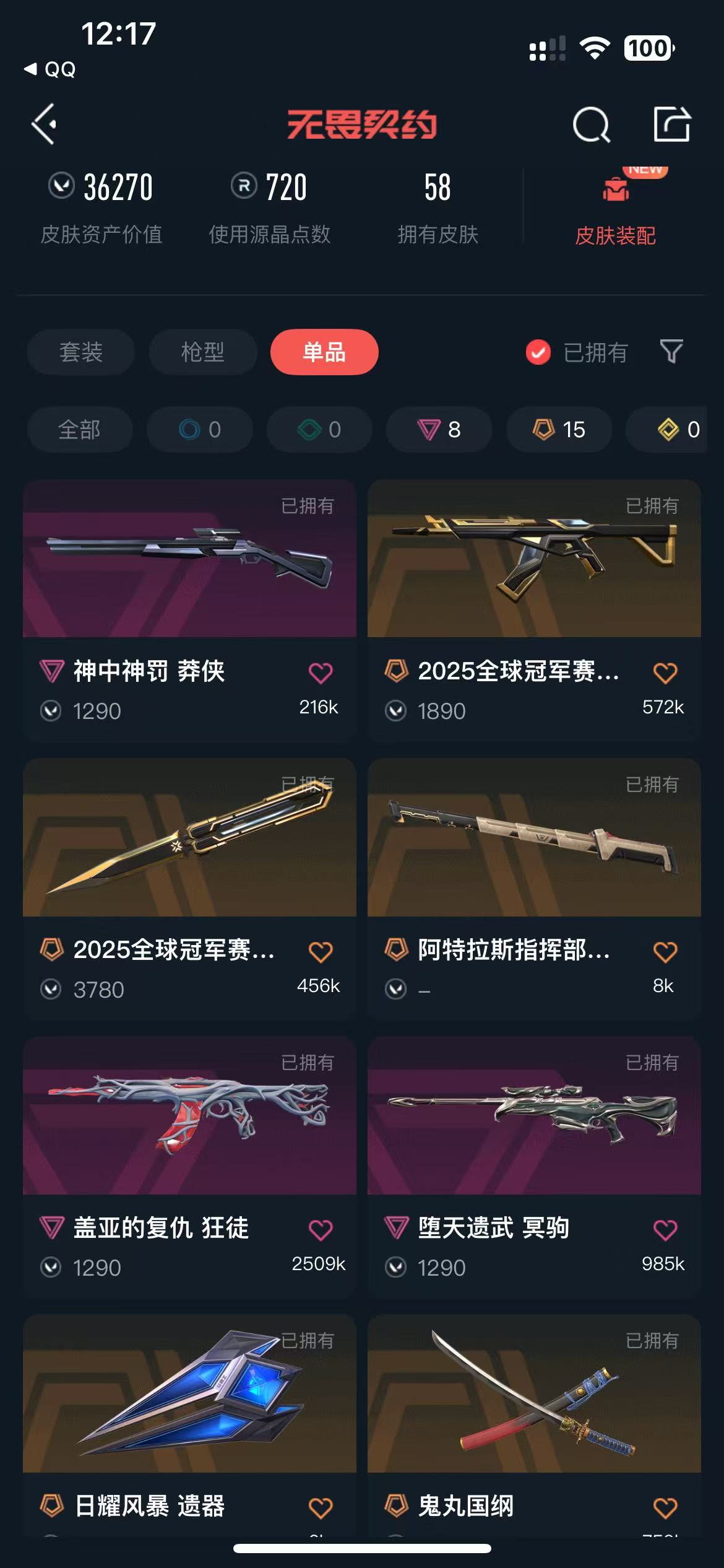 【当前段位:黄金III】冻结秒解✨2025冠军套✨离子2.0\虚空遗器\混沌\AK✨噬影者套✨鬼丸国纲