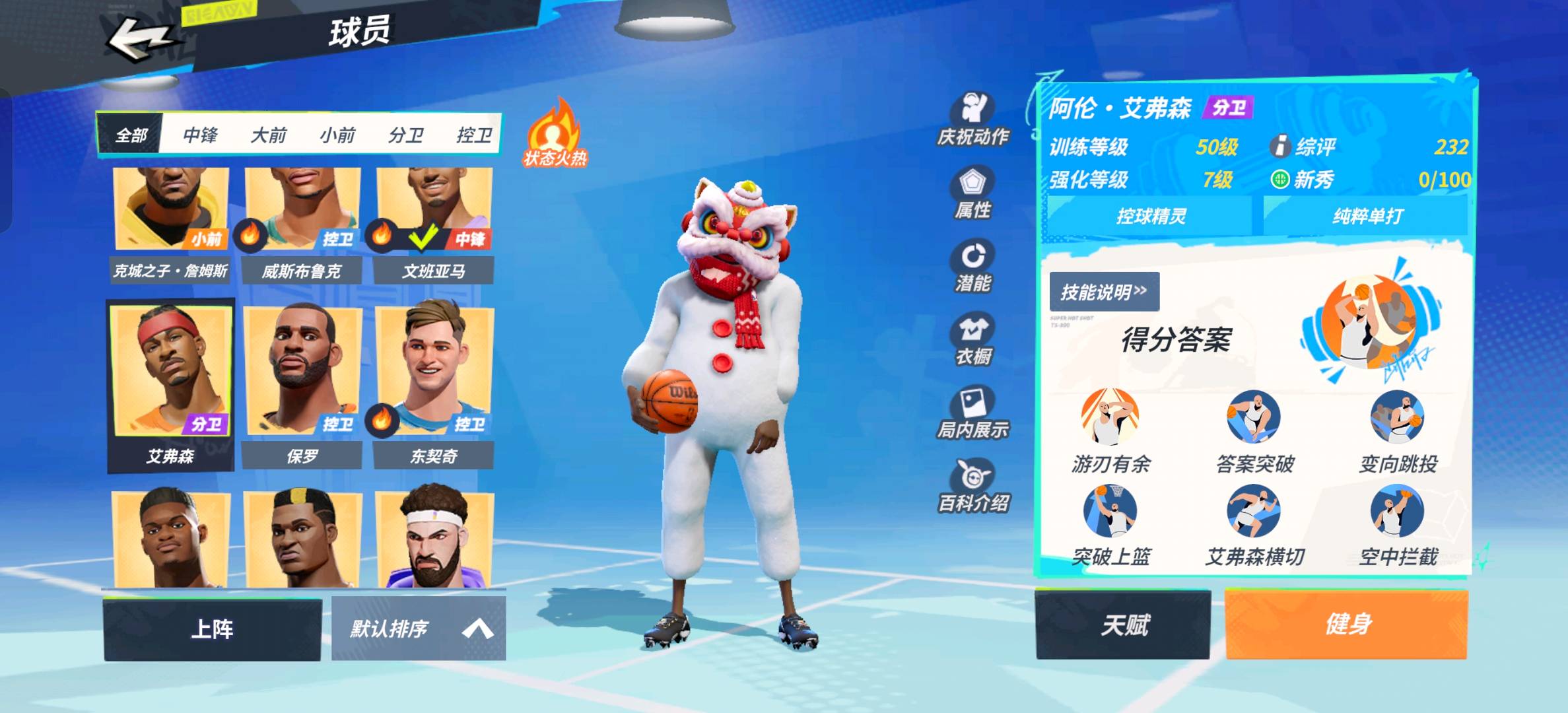 【安卓】 新增艾佛森,极品内线号。醒狮头三专属内线号7马龙专属7大虫专属7文班7大本2哈登2约胖专带一双过