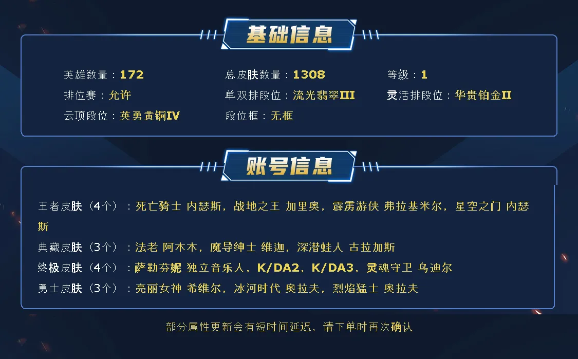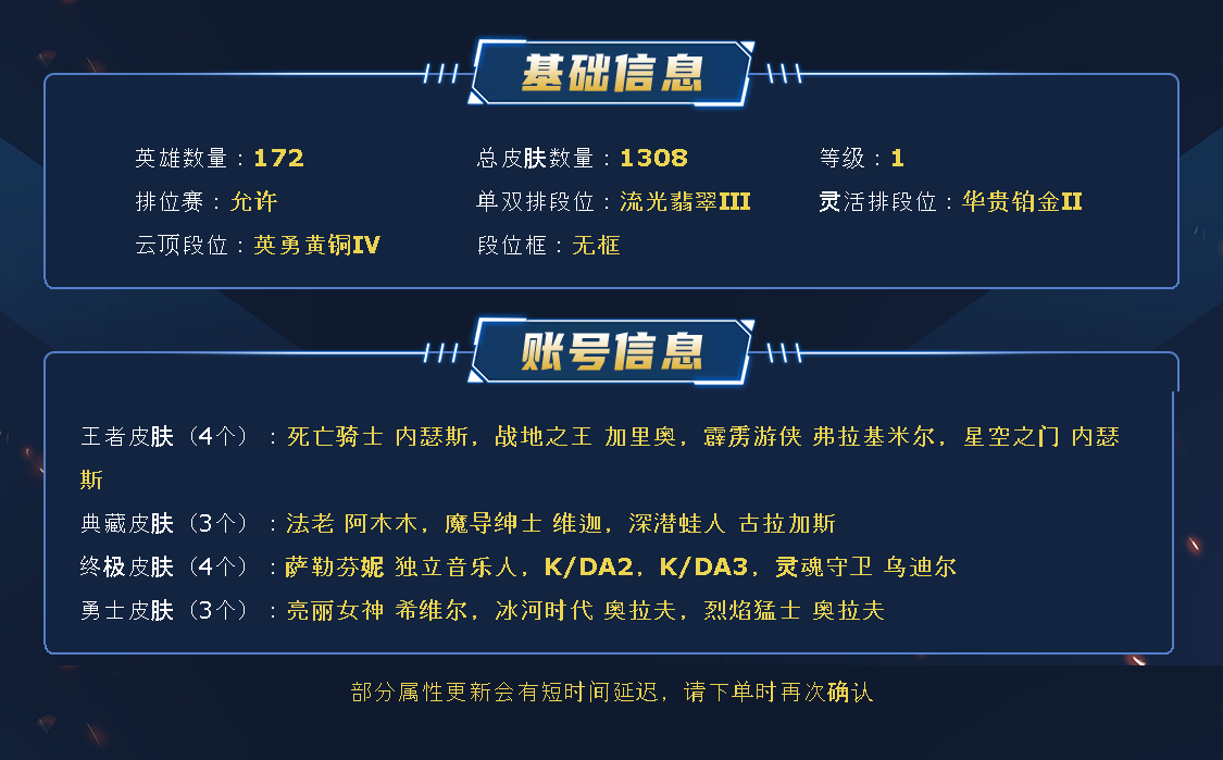 ~~喜欢记得收藏~~可排位~~1294皮全英雄~~租之前尽量查一下游戏ID,确保段位是您需要的,避免浪费您的时间~~请勿挂机逃跑故意送人头,谢谢合作,谢谢~~