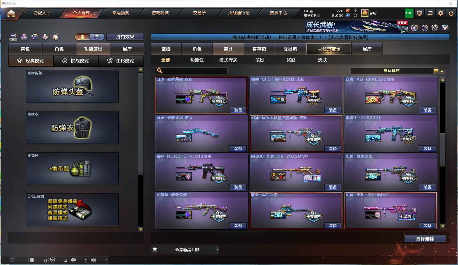 120v【4传说】【幻神7皮+卡】传说影煞-传说灵眸-传说破晓-传说夜影-m200幻神-幻神星火小队-幻神n9-幻神宠儿-幻神电流骇客-幻神冠军之幻-幻神荣耀世冠白鲨-幻神cfs2022-幻神音效卡-98k星神-冠军之特-冠军之刃-冠军之武-冠军之啸-冠军之怒-冠军之击-
