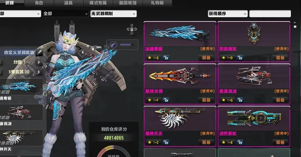超稀有立体机动巨人切割者迷彩狙四件套蛇神冰璃寒蟒星渊裁决魔神开天夙夜狼契虎神星核仲裁擎空雪崩锤幽浮混沌闪电九四赛季墨龙异星小深渊等