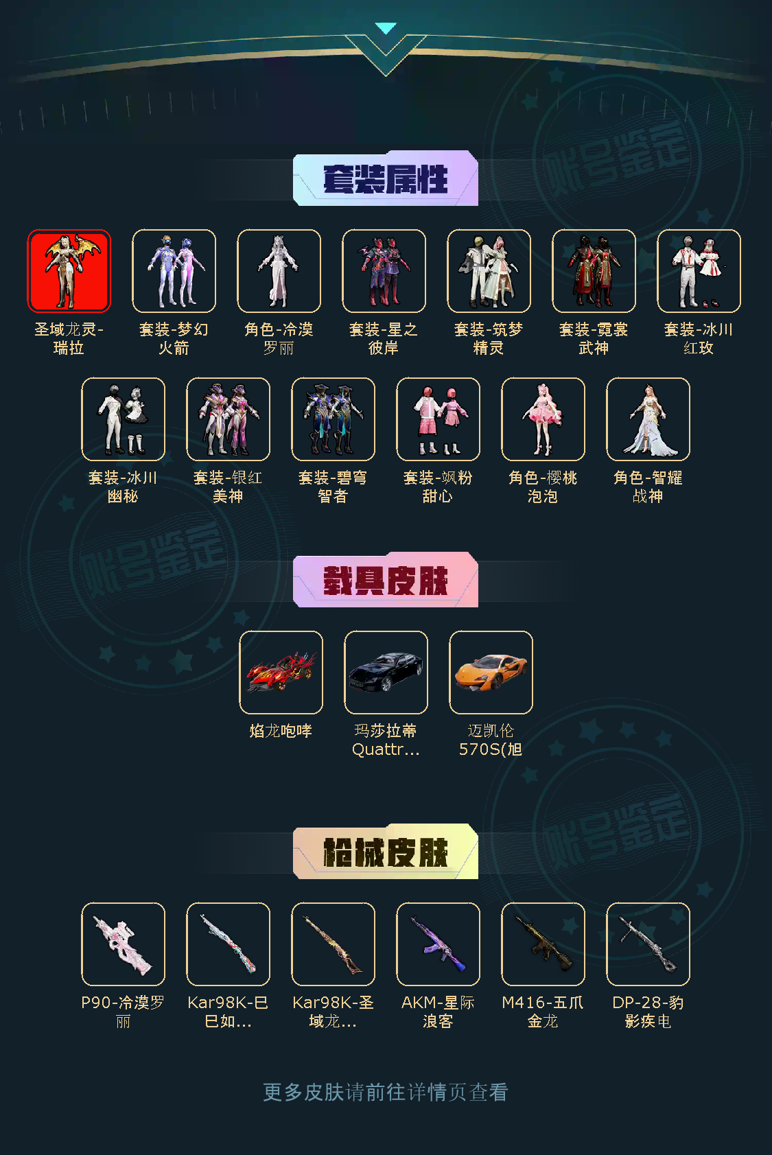 【稀有资产】圣域龙灵-瑞拉[4级]/M416-五爪金龙/套装-雪山精英/套装-龟仙人/套装-绒宝小鹅/套装-墨青刃影/套装-圣穹绘梦/玩偶服-美羊羊/角色-六号稻草人/角色-灵公主/角色-时希公主/角色-乐音