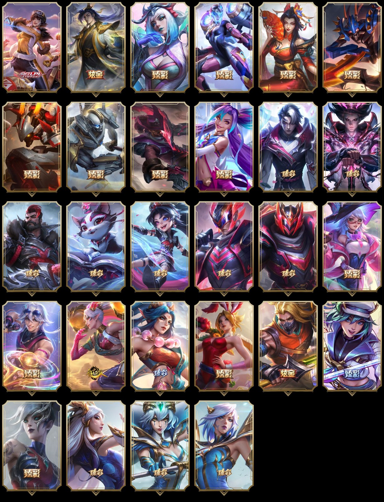 【重要炫彩】无畏骑士瑟庄妮赤子初心 玉剑传说无极白虎 净雪之月莫甘娜冬虹 弹幕天使卡莎炽天使勇敢 灵魂莲华卡西奥佩娅流火 霸天异形卡兹克掠空魅影 霸天异形卡兹克刹那银光 霸天剑魔亚托克斯涤罪之翼 西部魔影卢锡安贝利尔之怠 星之守护者金克丝黑洞 可爱可爱粉红红悠米 战场BOSS奇亚娜毒桃公主 战斗学院杰斯独角兽 可爱可爱粉红红提莫 糖果大战基兰樱桃流心曲奇 霸天龙神奥瑞利安索尔华天 可爱可爱粉红红克格莫 奥术师克格莫塑心学徒 奥德赛墨菲特恒星游历者 可爱可爱粉红红玛尔扎哈 泳池派对雷克塞水晶粉鲨 泳池派对璐璐萌萌红尾金 泳池派对璐璐坏坏鹰嘴鱼 EDG厄斐琉斯破军 EDG佛耶戈破军 EDG格雷福斯破军 EDG悠米破军 EDG佐伊破军 FPX李青涅槃 FPX普朗克涅槃 幻灵战斗兔阿萝拉梦幻强袭 宇航员纳尔万有引力 黑色荆棘莫甘娜马樱丹 光明哨兵派克虚无抗击者 天龙之子斯莫德赫赫龙威 心之钢伊泽瑞尔天纵才华 天龙之子卡莎飞龙乘云 天龙之子黛安娜龙腾四海 红莲之刃锐雯 墨之影武者亚索金墨耀影 斗魂觉醒拉克丝无限斗志 魔女阿卡丽虚荣 iG艾瑞莉娅极境 iG乐芙兰极境 iG卡莎极境