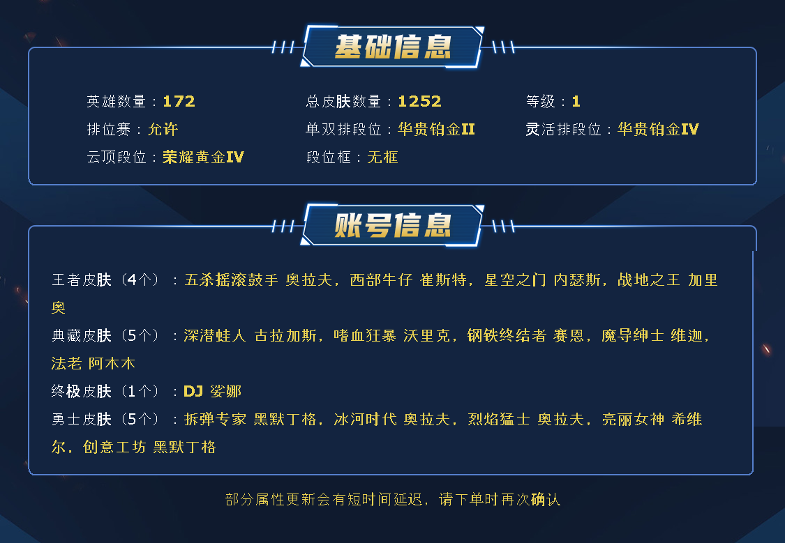 ~~喜欢记得收藏~~可排位~~1247皮全英雄~~租之前尽量查一下游戏ID,确保段位是您需要的,避免浪费您的时间~~请勿挂机逃跑故意送人头,谢谢合作,谢谢~~