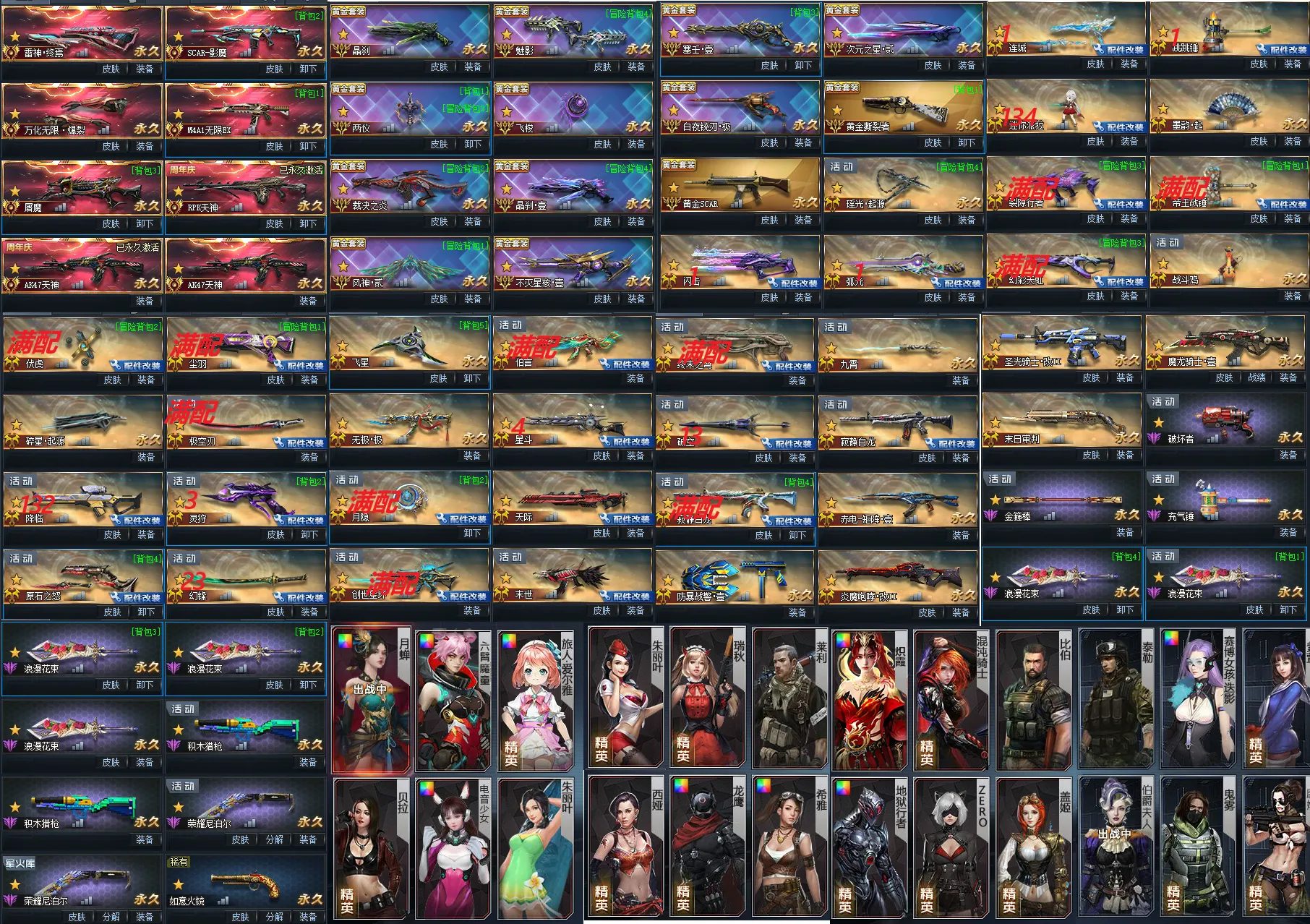 满配伏虎 满配尘羽 满配极空刃 灵狩 降临123 幻锋23 月隐满配 创世满配 伯言满配 终末满配 白龙满配 幻宇满 战锤满配 裂缝满配 九霄 防爆壹 猎枪 淬火尼泊尔 火铳