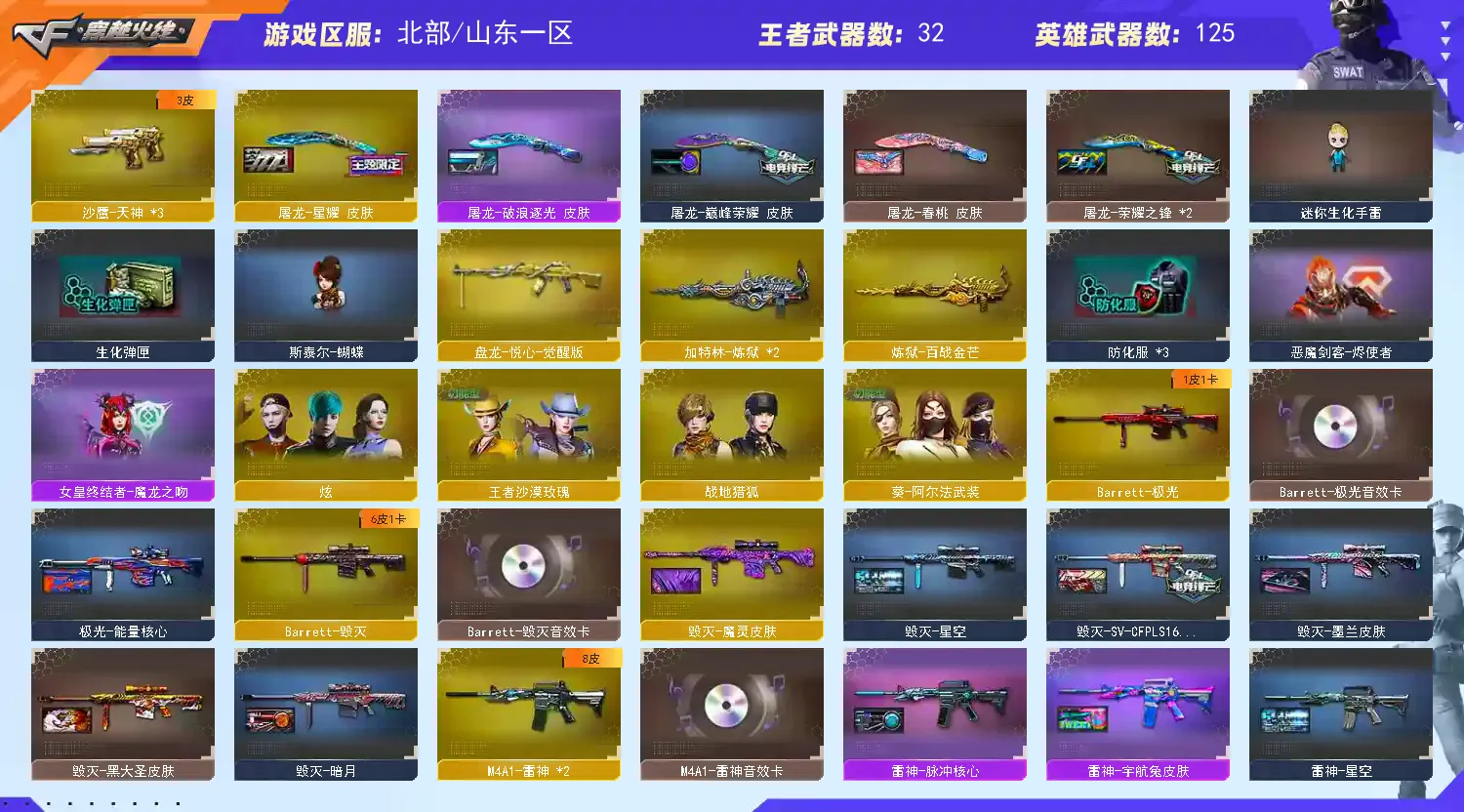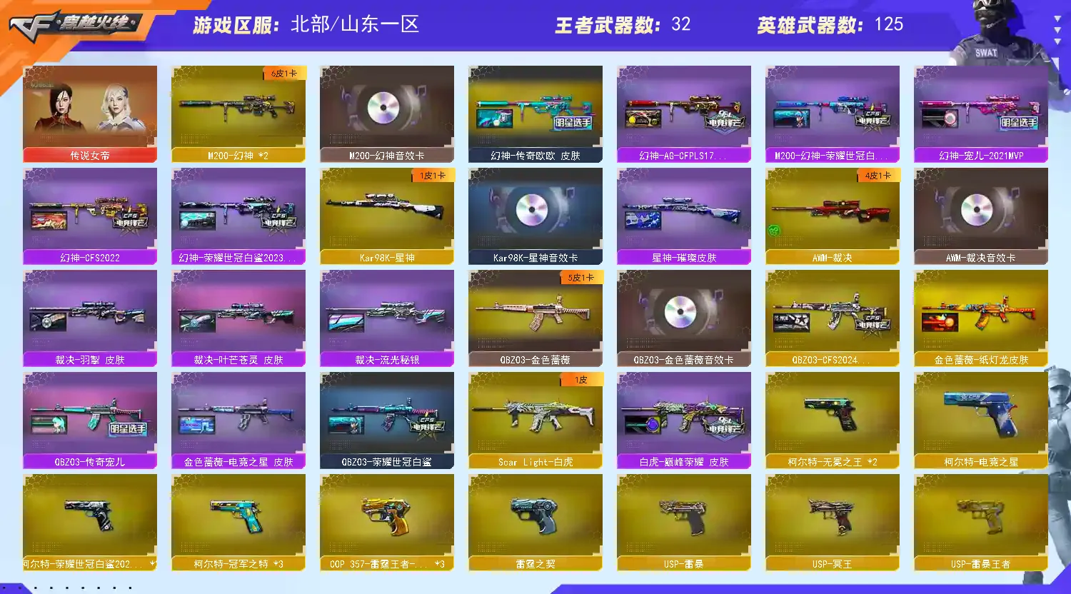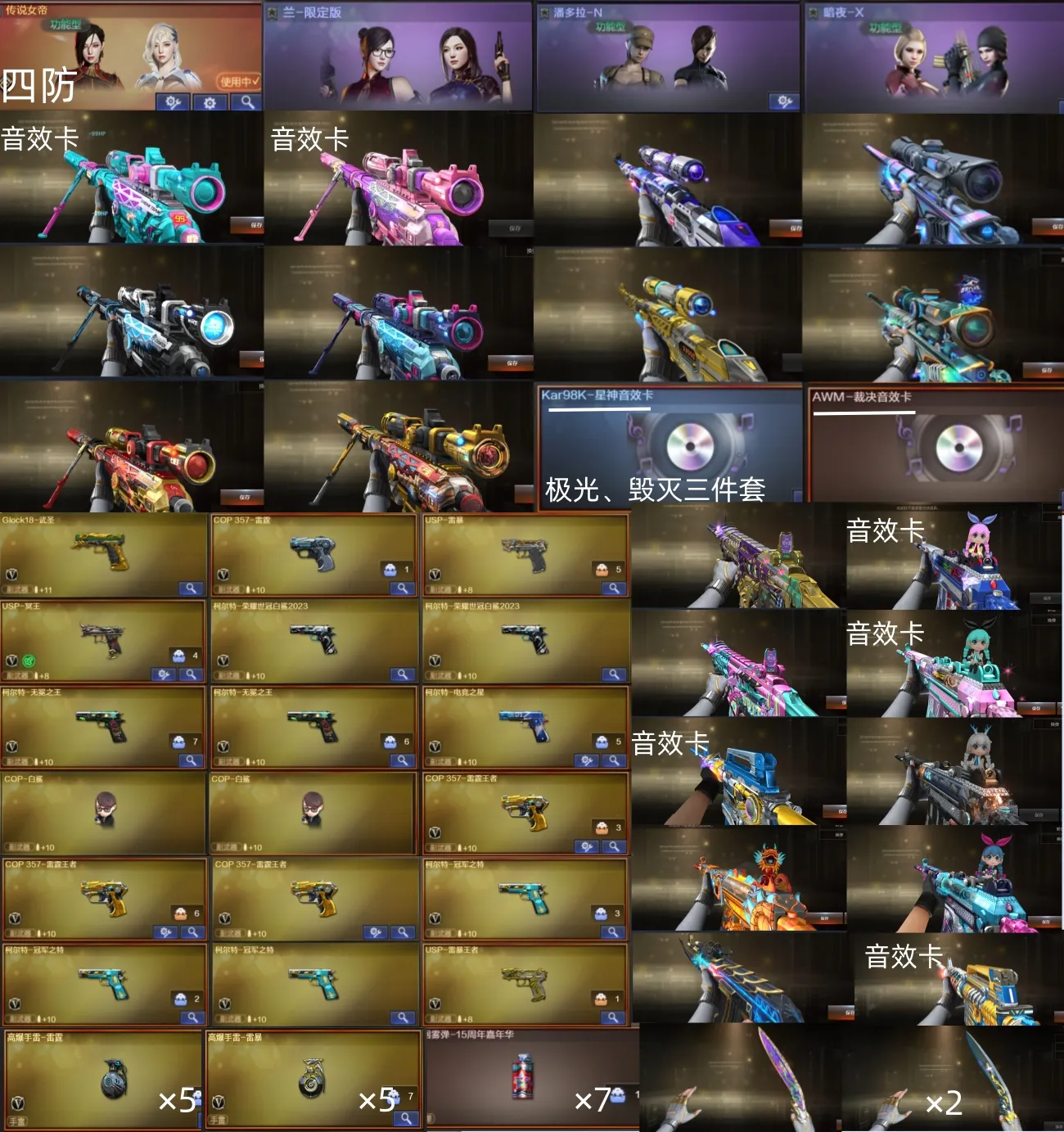四防女帝、幻神欧欧 宠儿三件套、裁决流光三件套&星神三件套、8小柯尔特&2雷暴1冥王&4COP雷霆