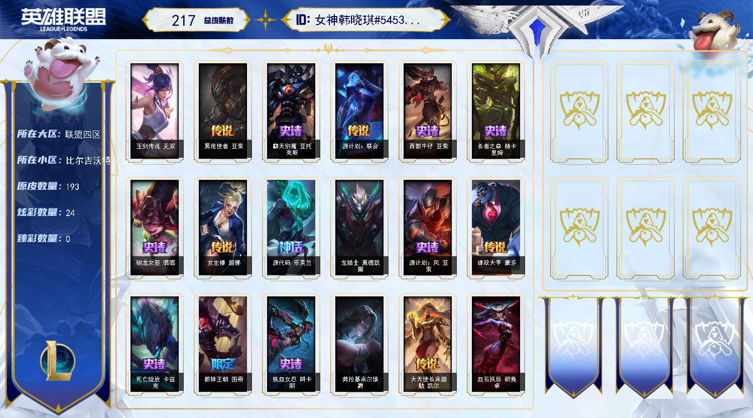 - 神话皮肤数量: 3