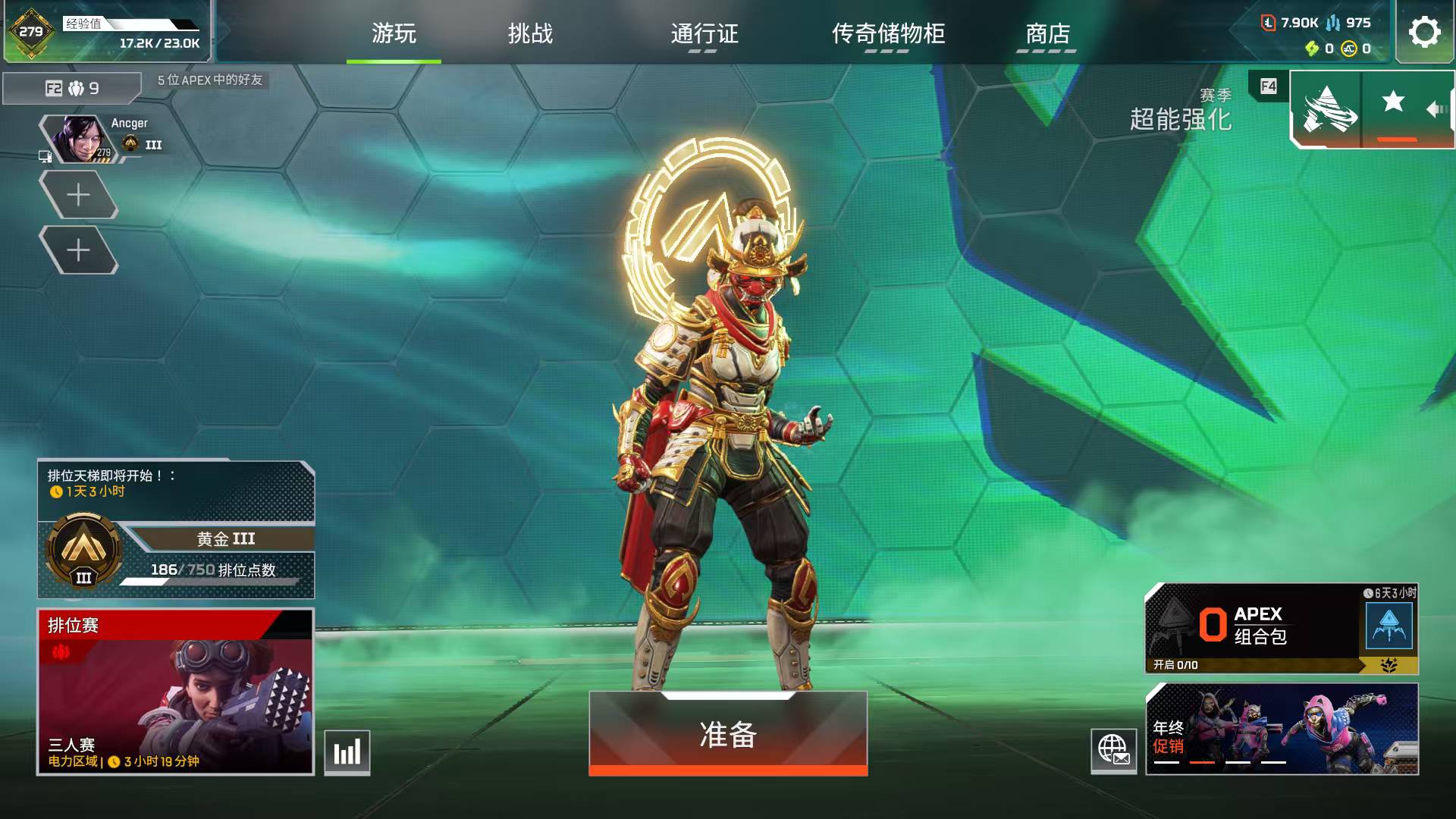 全传奇/最高铂金段位/已绑ea/传奇54金皮/武器58金皮/1命脉传家宝/散热器等多通行证皮/可排位