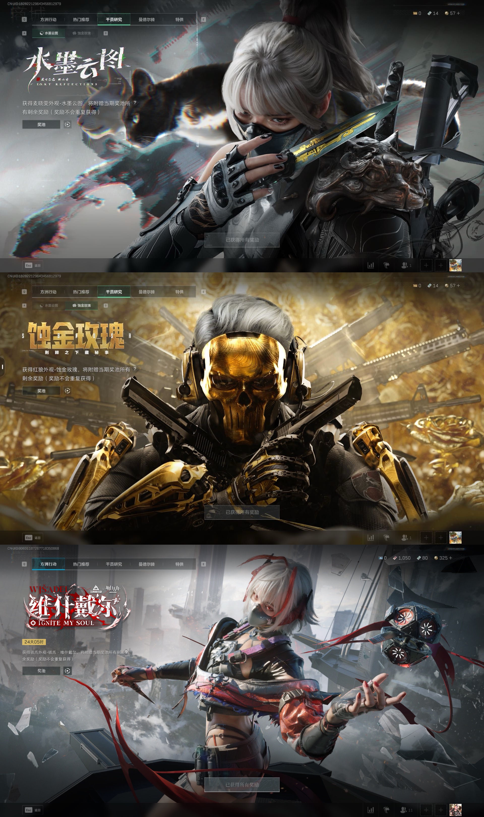 6套加aw 三红三刀渐变|毁灭之源|蚀金玫瑰 水墨云图 戴什戴尔|怜悯捆绑包|信条捆绑包|影锋捆绑包|24金枪皮