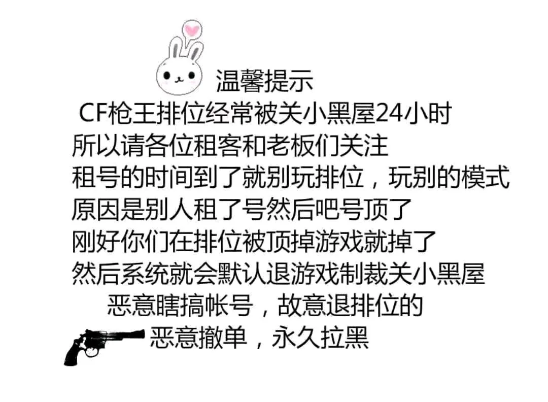 枪王排位(巅峰赛)请勿挂机或中途退出,会被禁赛,恶意瞎搞账号、故意退排位(巅峰赛)的将永久拉黑