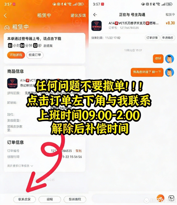 看清在下单,观察期不能打排位,撤单全平台拉黑,在也租不了号✅高危联系卖家解除✅高危联系卖家解除✅高危联系卖家解除✅未回复多等几分钟,会补偿时长!!!❤️请勿使用外挂,非官方安装包,改肤软件等非法插件启动游戏,照成账号封禁必联系平台提供资料追究法律责任!❤️文明游戏切勿开G,切勿以身试法。通过正常升级充值获得装备的游戏账号,属于个人财产,受法律保护。《刑法》第二百七十五条规定故意毁坏公私财物,数额较大(5000元以上)或者有其他严重情节的,处三年以下有期徒刑、拘役、或者罚金;数额巨大或者有其他特别严重情节的,处三年以上七年以下有期徒刑。 如出现任何有损账号的行为导致账号封停,我们会将恶意租客的注册手机号、姓名、身份证信息和登录游戏ip地址提交给公安局进行立案,追究其刑事责任!!!