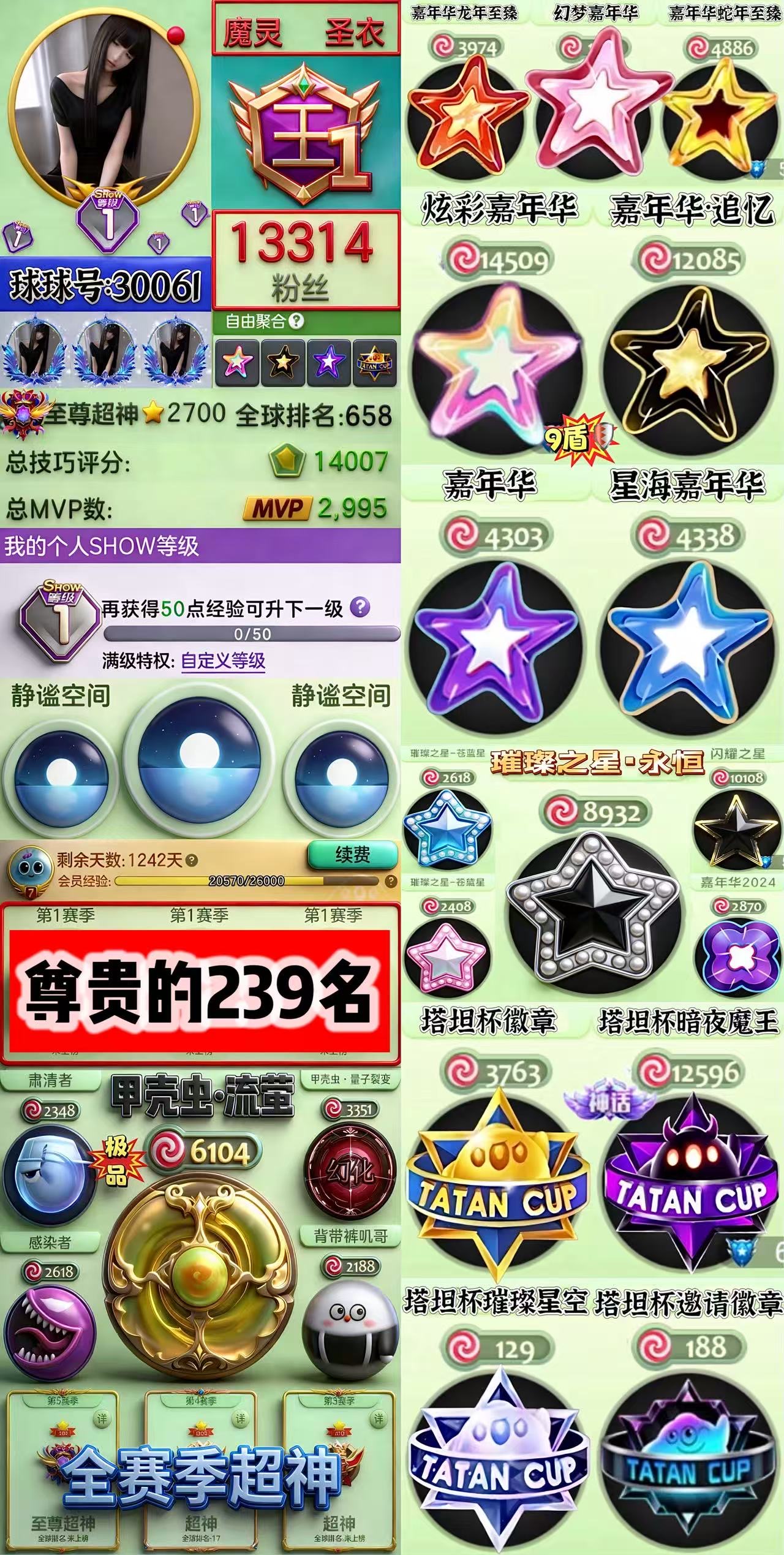 【全平台】 全服惟一❤️仅有尊贵的239名❤️满赛季嘉年华塔坦杯大满贯袍子,稀有璀璨永恒,静谧空间
