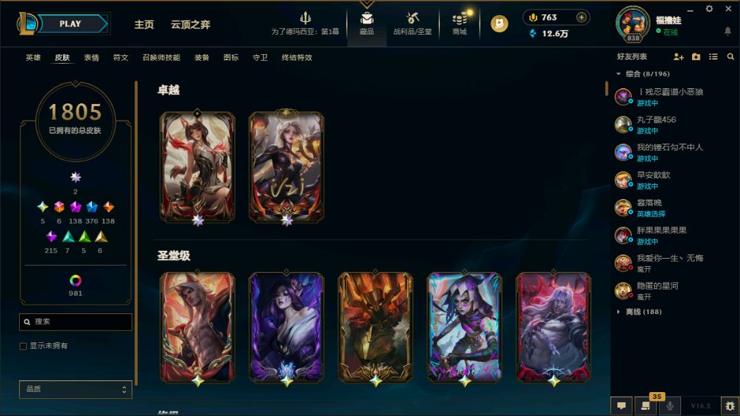 圣堂佛耶戈丨1805原皮丨138神话丨不朽卡莎丨全圣堂丨全神话幻想丨136臻彩丨376限定