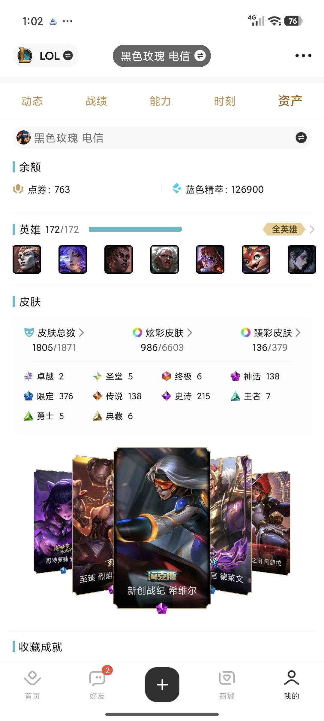 黑色玫瑰,1805原皮。除个别英雄,基本每个英雄全皮。