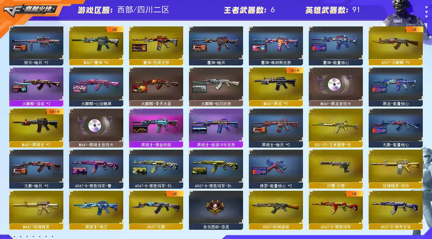99V 4王者 2炫金 4防角色 王者玲珑小乔 灵狐者职场灵狐 M200幻神+宠儿2021MVP皮肤+音效卡 6盘龙 6烈龙+斯泰尔蝴蝶 SCARL白虎 M14EBR玄武 QBZ03王者蔷薇 武器皮肤 幻神宠儿MVP 毁灭CFS2018 火麒麟AG皮肤 音效卡 幻神音效卡 极光音效卡 黑骑士音效卡 黑龙音效卡 毁灭音效卡