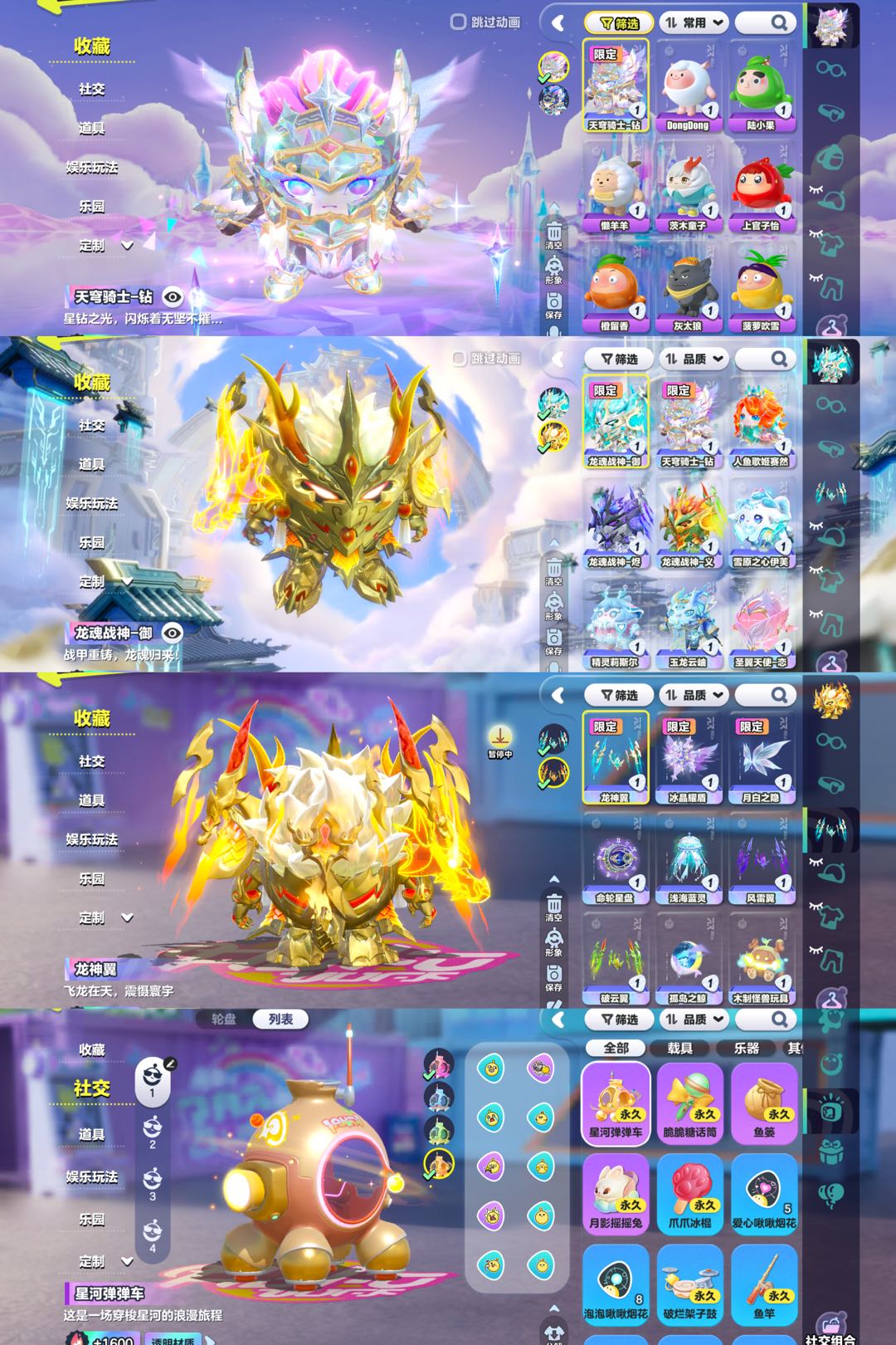 满氪金弹车兔车✨月白龙神翼✨金色大机甲龙魂战神小机甲义烬天穹骑士圣翼天使人鱼伊芙精灵玉龙✨小羊懒羊羊灰太狼茨木果宝特攻上官子怡橙留香菠萝吹雪隐藏船魔苏心