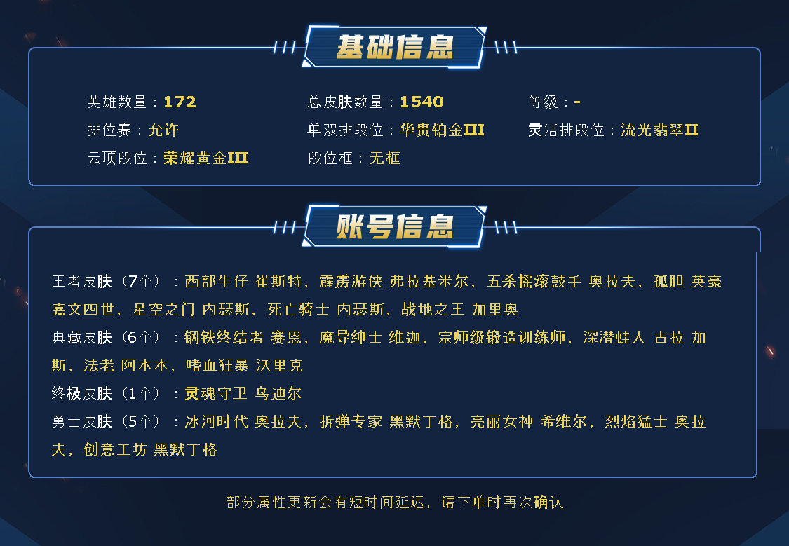 ~~喜欢记得收藏~~可排位~~1533皮全英雄~~租之前尽量查一下游戏ID,确保段位是您需要的,避免浪费您的时间~~请勿挂机逃跑故意送人头,谢谢合作,谢谢~~