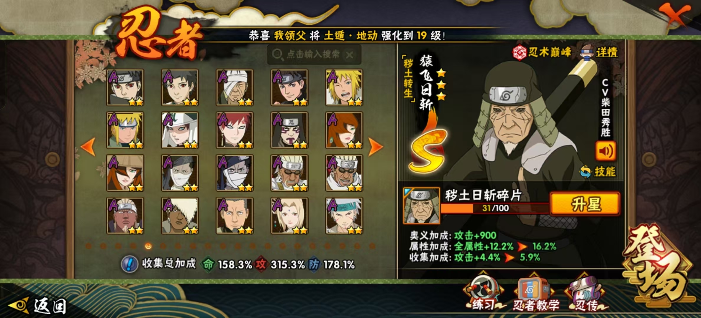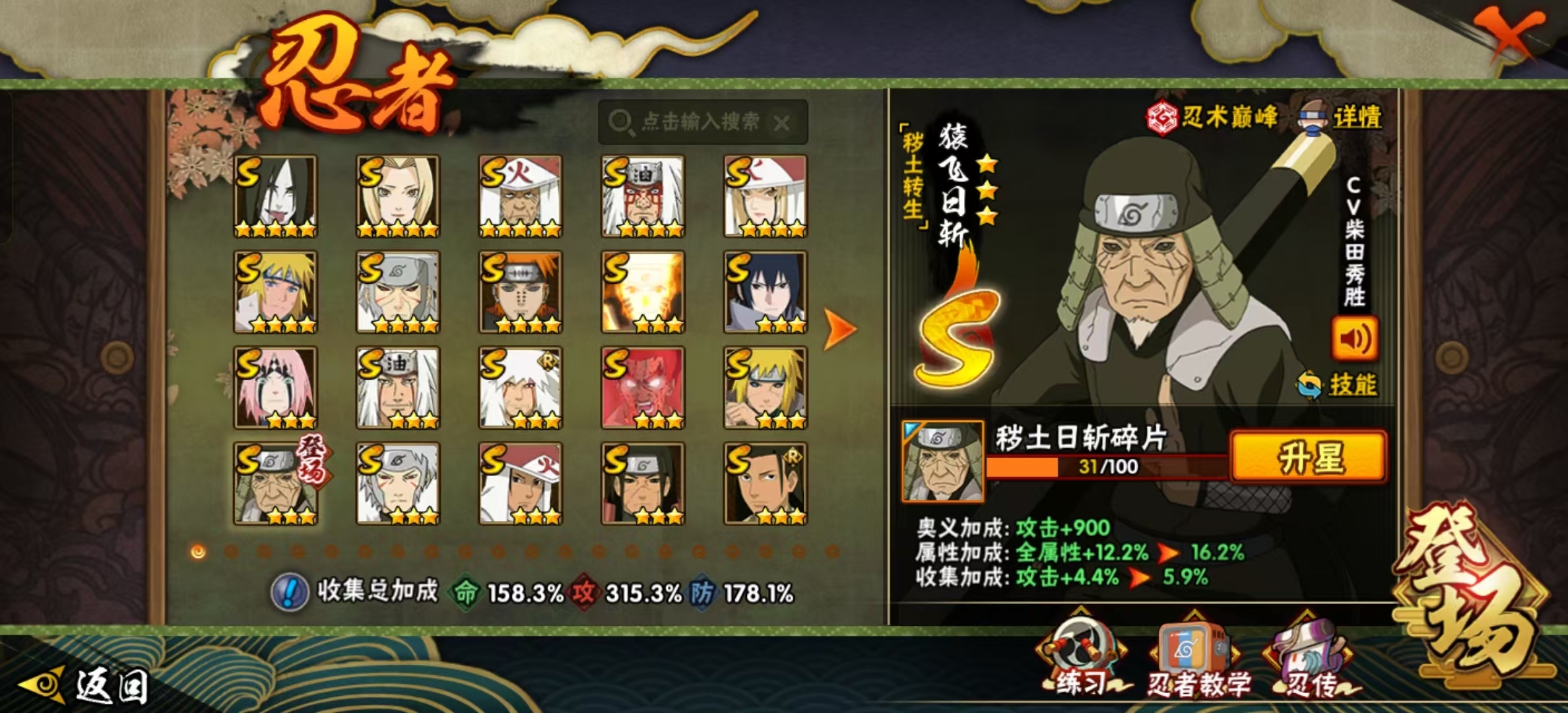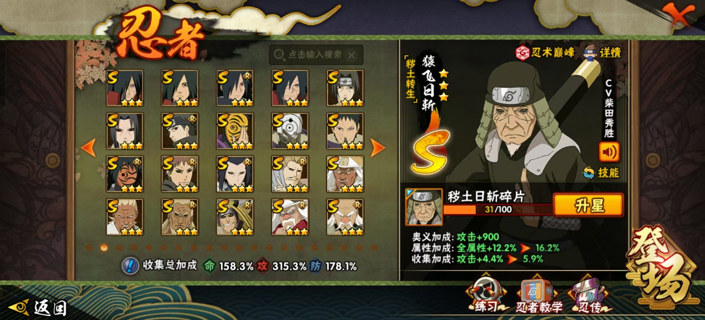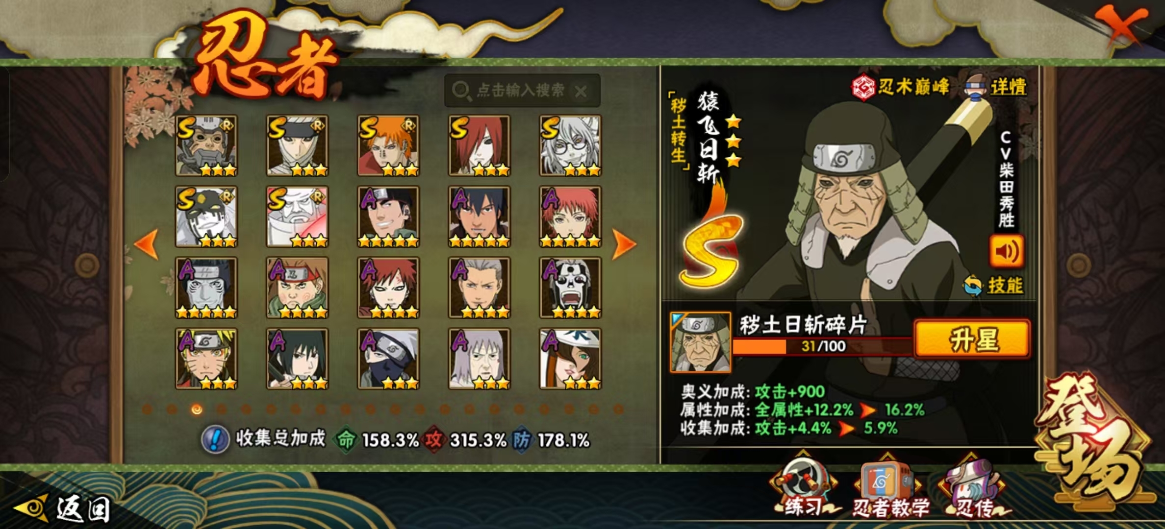 侠隐佐助、漂泊带土 54S 99A 须佐止水、忍战艾、桃式、解斑、小孩鸡翅、晓创生飞段、四漂泊、面麻