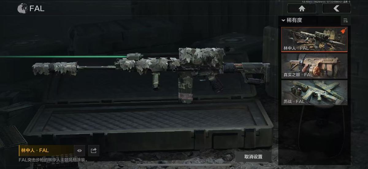 近战武器:三尺万仞战术剑,胜利军刀,明刀绣春,急袭弯刀,瑞兔折刀,突击匕首,工兵铲,来战开山刀;手套:玉鸾挂枝手套,战术甲胄防护手套,冬日手套;枪皮:竞技M4A1,自喷网格H416,来战AK74N,山地伪装AK74N,胜利锋刃AEK,涂鸦G18C,秩序G18C,碳黑M9A3,水陆迷彩G18C,战术大师M4A1.,真实之眼FAL,历战AKM,夏日风情AK102,缟兵玄墨VSS,玄戈梨花VSS,骑士之剑MK14,缟兵玄墨M110,玄戈梨花M110,全地形数码M110,滑雪季UMP45,自喷网格UMP45,荒漠涂绘T79,山地伪装Vector9,竞技Vector9,滑雪季Suomi,沙漠作战AX50,龙影Suomi,北国内卫AUG9,苏梅克UMP45,沙色Vector45,湖冰倒影MP5.,龙威MP5,缟兵玄墨MPX,玄戈梨花MPX,森林迷彩MP5.,激流MPX,飞鲨VSS,山地伪装MK14,异彩合金M14,橄榄绿M96,盛冬S12K,胜利锋刃S12K,林中人FAL,黄金H416,缟兵玄墨AKM,巅峰M4A1,德尔塔小队M4A1,长缨风掣AX50
