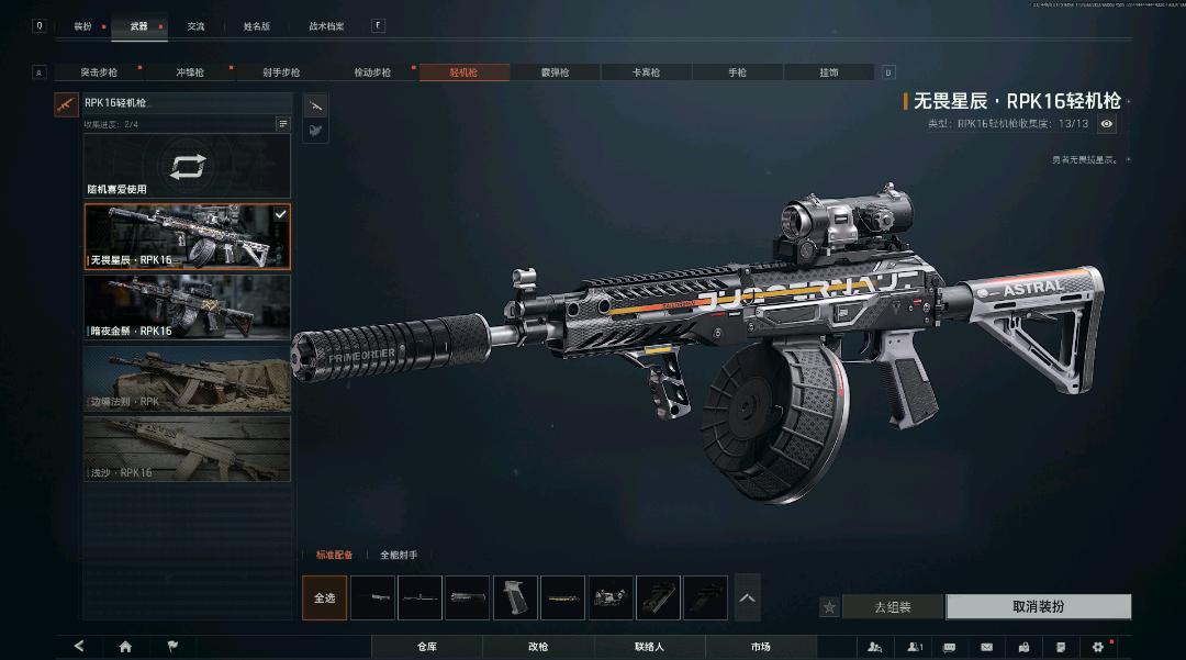 金皮有蝴蝶刀+手套(霓虹幻锋套装)+无畏星辰RPK16轻机枪