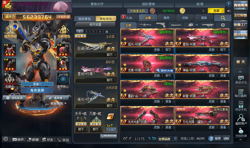 配件武器:崩雷◆猩红◆巫灵◆渊瞳◆归墟血契◆星斗◆天际◆月隐◆寂灭◆破魂◆岚翼◆美杜莎之吻◆乾坤◆棱晶◆海神之怒◆赤血之源◆焚风◆鬼刃修罗◆奏鸣◆藤木蔓芯◆创世星环◆幻彩星涡◆闪击◆尘埃◆幽冥◆绝境◆玄天◆末世◆弧光◆黑炎◆连城◆核子裂变◆跳跳锤◆迷你派拉◆裂隙行者◆帝王战锤◆幻彩天虹◆子龙◆伏虎◆尘羽◆轮回之刺◆蛮牙◆炎凰◆夜枭◆盖亚◆骑兵◆赛博野兽◆玄武◆魔杰座◆天引◆陷阵◆空间掌握者◆