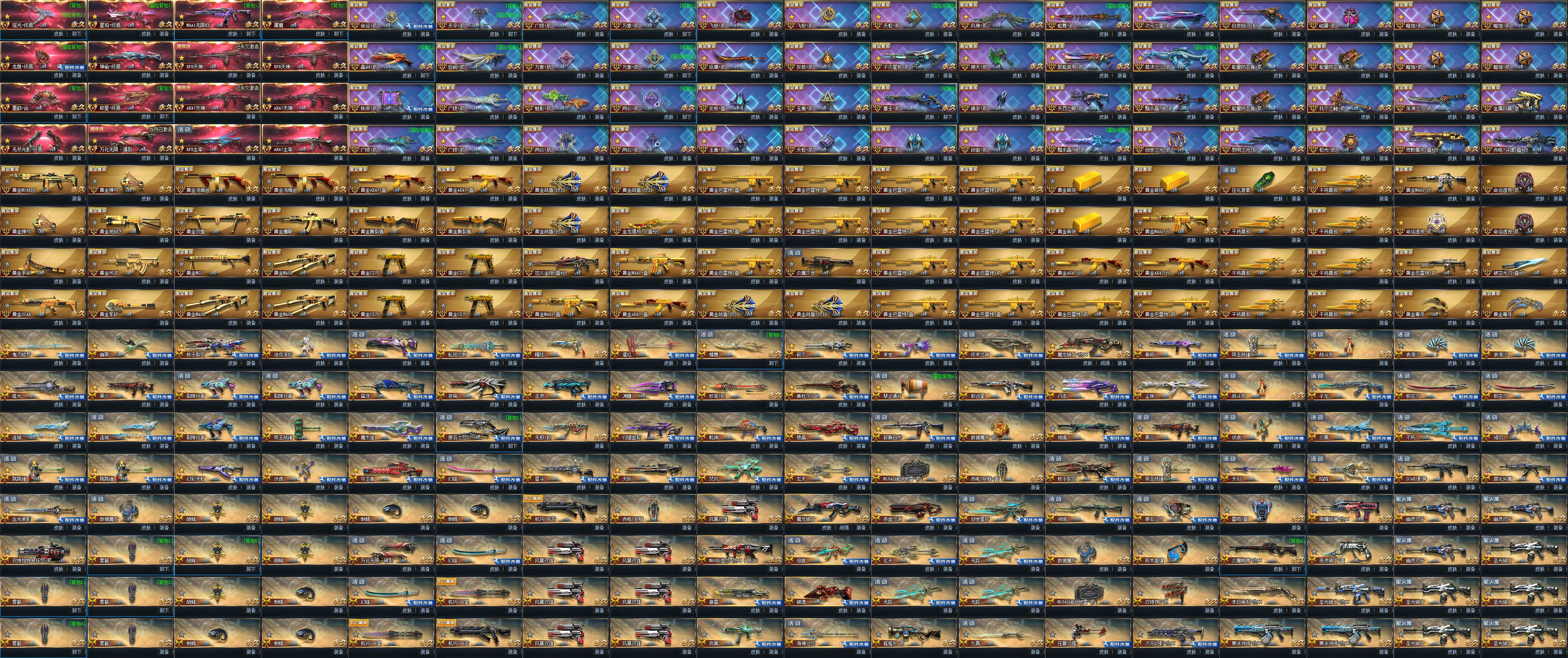 传说武器:瑶光终焉◆星珀终焉◆RPK主宰◆龙息·终焉◆神谕·终焉◆AK47主宰◆墨韵·合◆碎星·终焉◆无尽光影·终焉◆M4A1无限EX◆屠魔◆AK47天神◆RPK天神