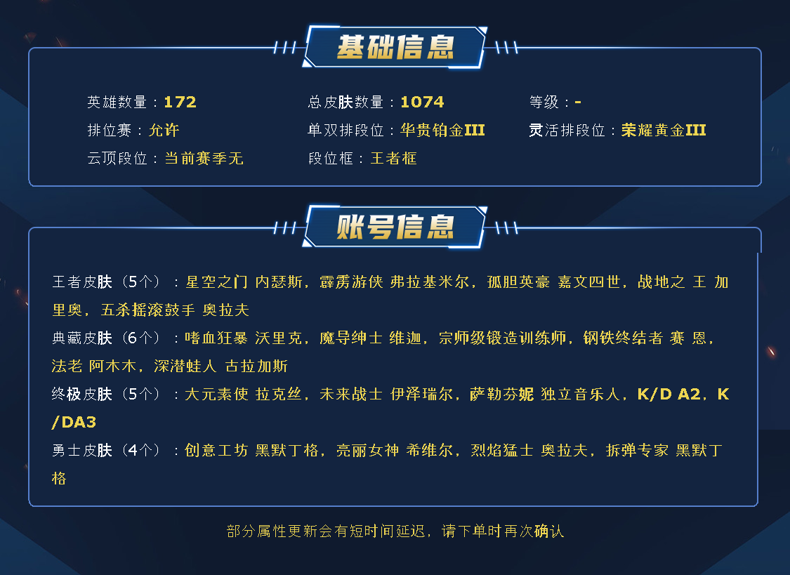 1100皮 | 39神话 | 121限定 | 至臻永恒星灵 | 恶魔男爵 | 至臻魅惑女巫