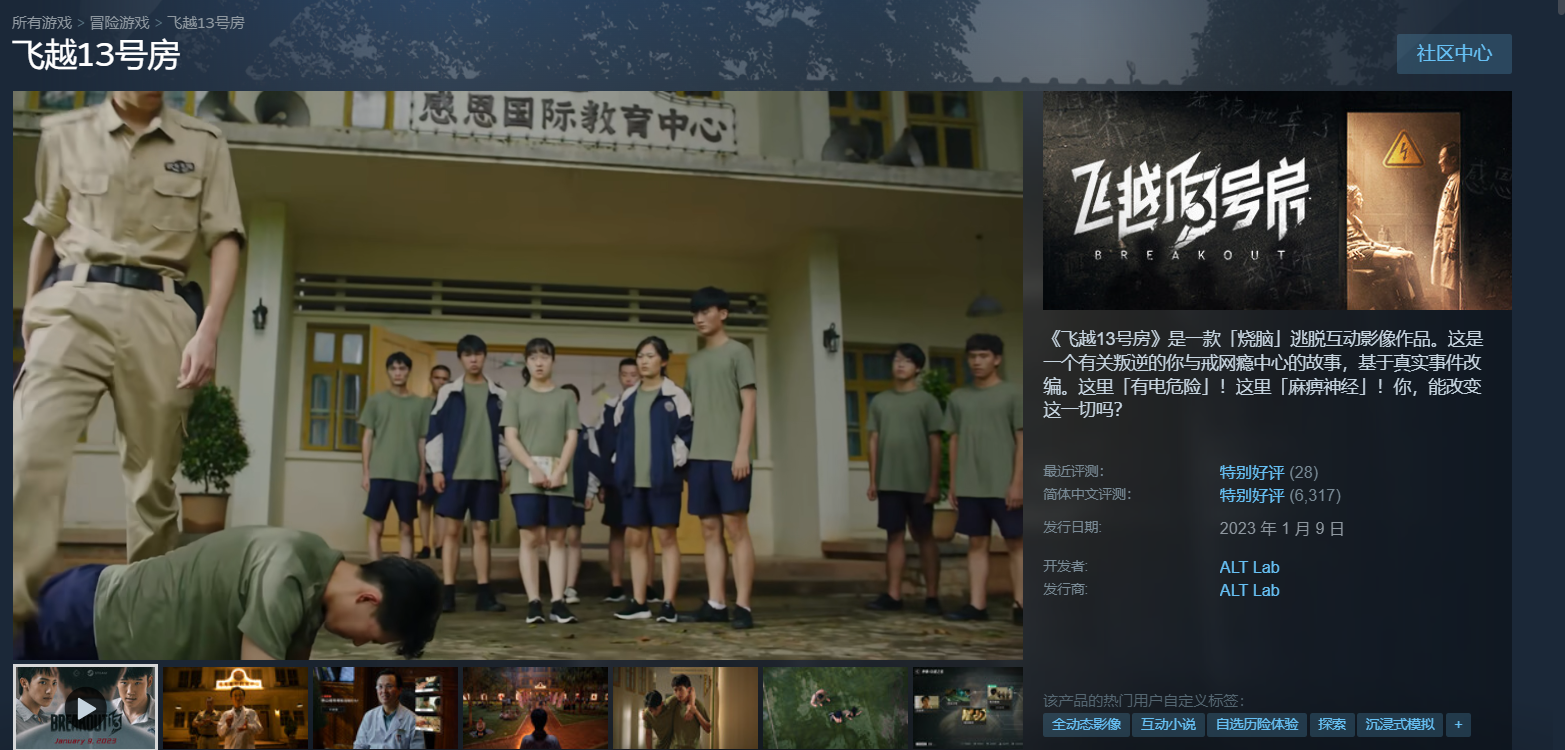 《飞越13号房》是一款「烧脑」逃脱互动影像作品。这是一个有关叛逆的你与戒网瘾中心的故事,基于真实事件改编。这里「有电危险」!这里「麻痹神经」!你,能改变这一切吗?
