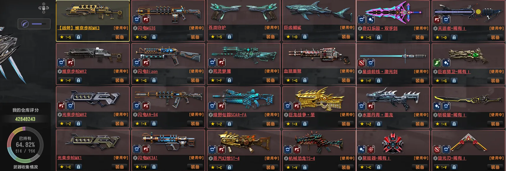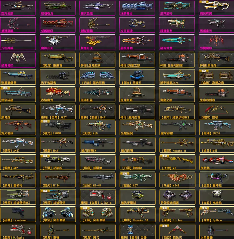 旋光刃●双黯四件套五特典狙机枪黯火黯影●四闪电机枪全套●金兔龙神威次元双雷●重铸怀旧套光束维京套