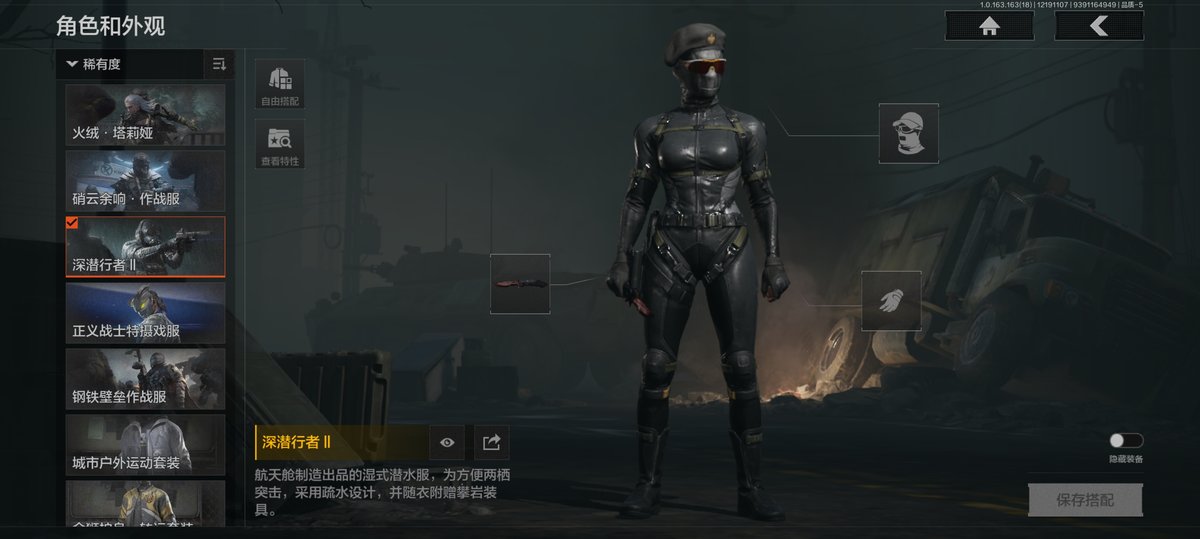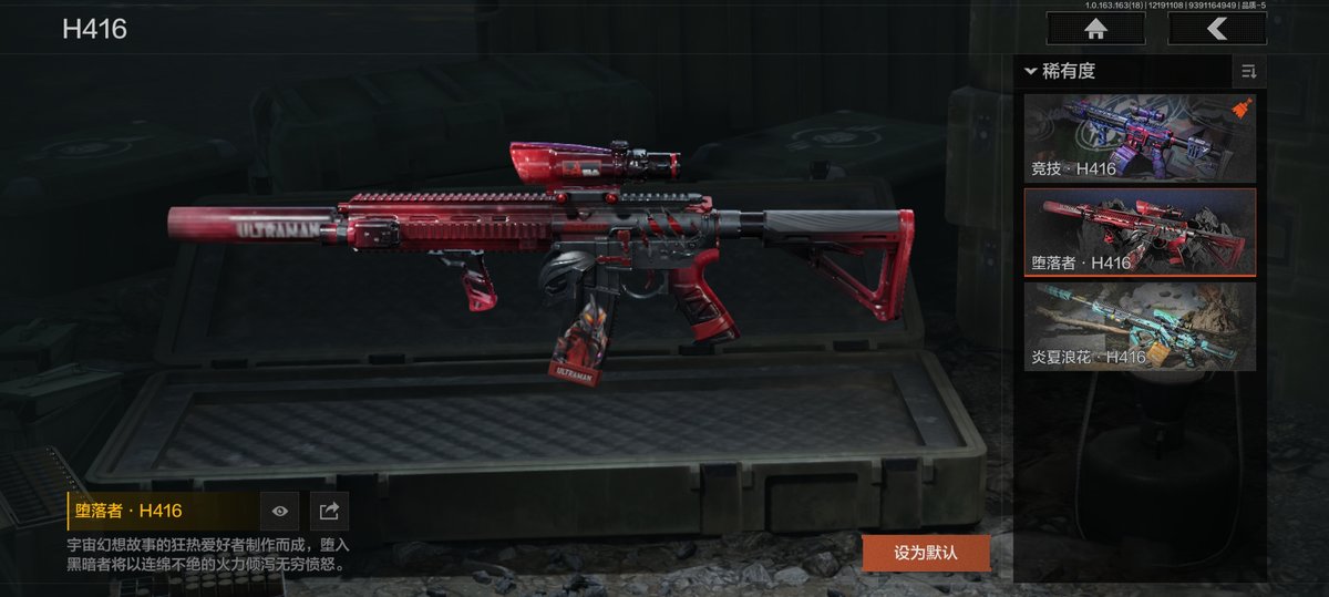 30级,历史最高段位:暗区传说,【角色皮肤】:火绒塔莉娅,硝云余响作战服,深潜行者Ⅱ,正义战士特摄戏服,钢铁壁垒作战服,使徒瑞文,创伤小组后勤工作服,台风IV竞技运动服;【近战武器】:S-07折刀,赢家匕首,瀚星斩铁,不屈烈怒,涂鸦利刃,胜利军刀,急袭弯刀,瑞免折刀,工兵铲,来战开山刀;【突击步枪】:竞技FAL,诸星之子FAL,战术大师FAL,竞技H416,堕落者H416,水果AR57,旗帜AEK,旧王圣谕QBZ191,钢铁真理QBZ191,战术大师QBZ192,突围FAL,棱光裂变AKM,历战AKM,深暗星云M4A1,巅峰M4A1,竞技M4A1,利齿风暴MDR,竞技MDR,北国内卫MDR,逆火MDR,炎夏浪花H416,涂鸦AK102,火力倾泻AUG,铁火战痕AUG,竞技AUG,极恶AUG,战术大师AK74N,棱光裂变AK74N,来战AK74N,幽毒AK74N,山地伪装AK74N,赢家F2000,钢铁真理F2000,雪山之王F2000,深潜F2000,炎夏浪花AR57,竞技AR57,棱光裂变ACE31,骑士之剑ACE31,轰炸小子ACE31,狂怒荣耀AEK最后防线AEK,深蓝AEK,暴虐AEK,粉绒臻选AN94,火绒AN94,北国内卫AN94,壁垒AN94,骑士之剑Groza,正在骇入Groza,伦琴计量T951,百锻寒芒T951,夏日风情SCAR,利齿风暴T03,百锻寒芒T03,深潜T03,林地数码T03,迅影毒锋AK12:【冲锋枪】:利齿风暴MPX,炎夏浪花MP5,无声暗月MP5,深蓝MP5,玄戈梨花MPX,雪山之王MPX,高塔之内P90,星云火花P90,利齿风暴T79,超越自我Vector9,恶念Vector9,战术大师Suomi;【射手步枪】:骑士之剑VSS,棱光裂变QBU191,高塔之内VSS,典礼武备MK14,快乐游戏M110;【栓动步枪】:无声暗月AX50,轰炸小子AX50,粉绒臻选AR30,超越自我AR30,莫克斯M24,骑士之剑SJ16:【轻机枪】:狂怒荣耀RPK16,壁RPK16,战术大师RPK16;【手枪】:赢家G18C,涂鸦G18C;