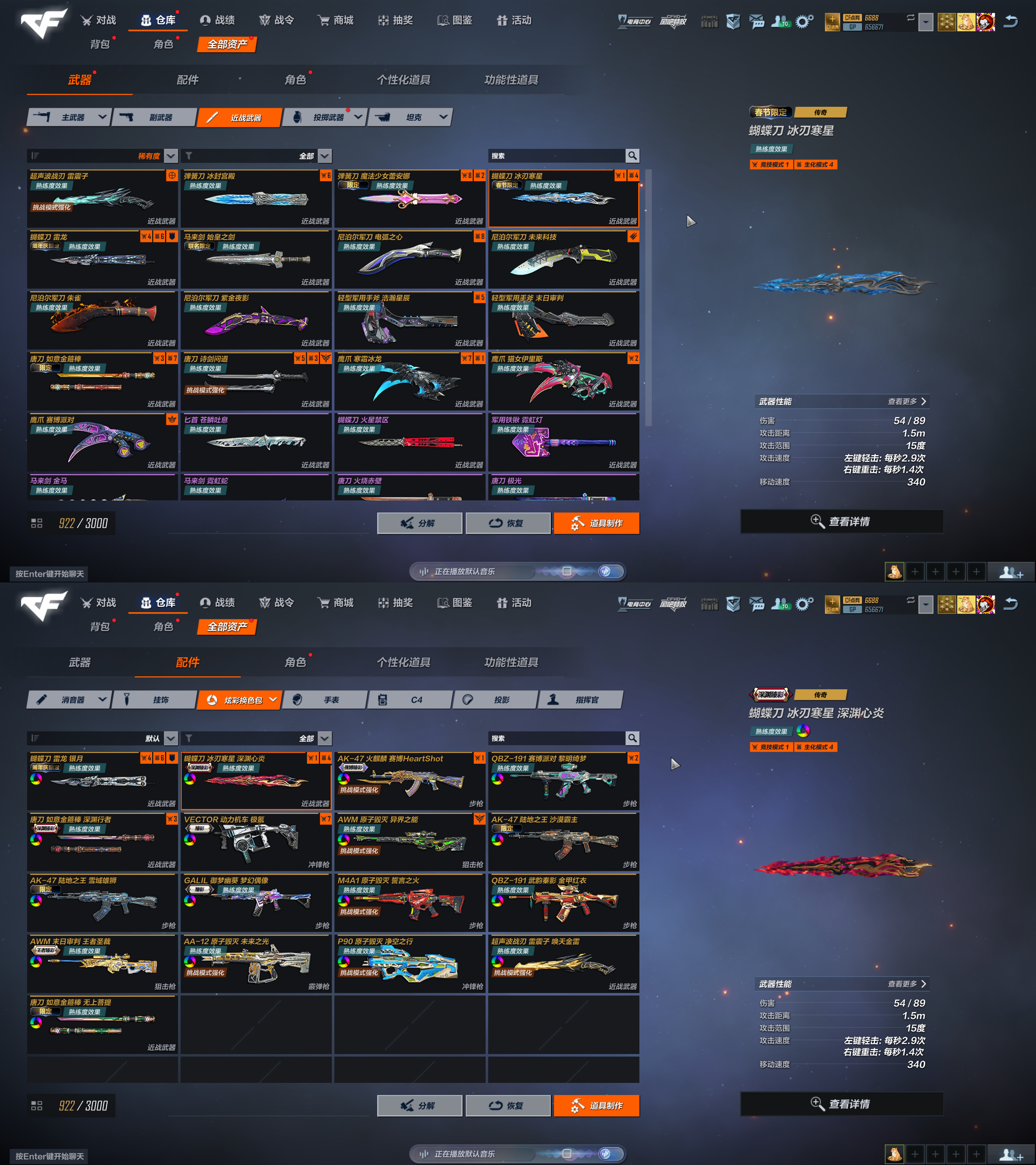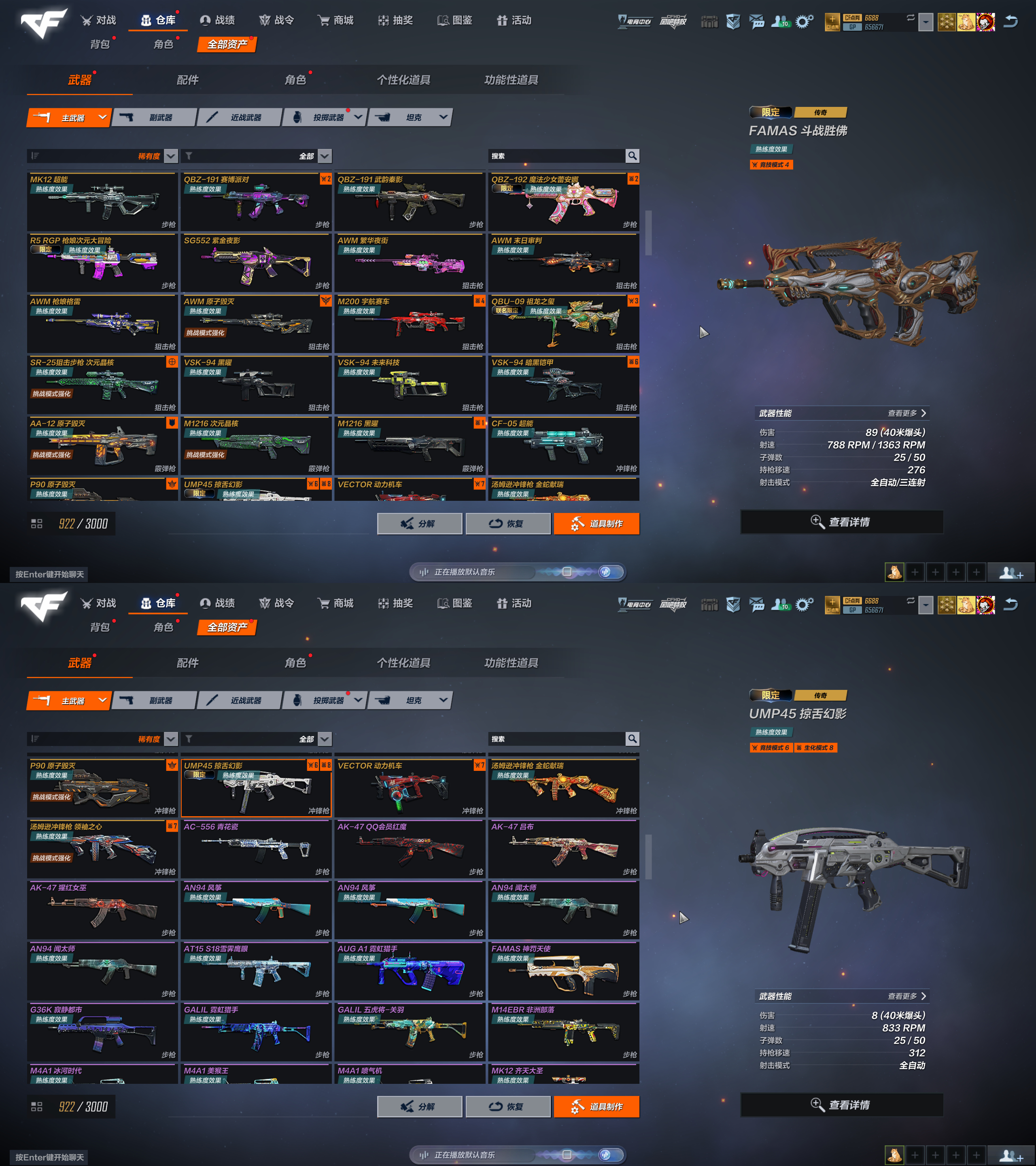 FAM斗战胜佛✅AN94极氪VE极氪✅UMP幻影✅蝴蝶刀冰刃炫彩心炎✅雷龙银月✅弹簧刀冰封✅蕾安娜✅