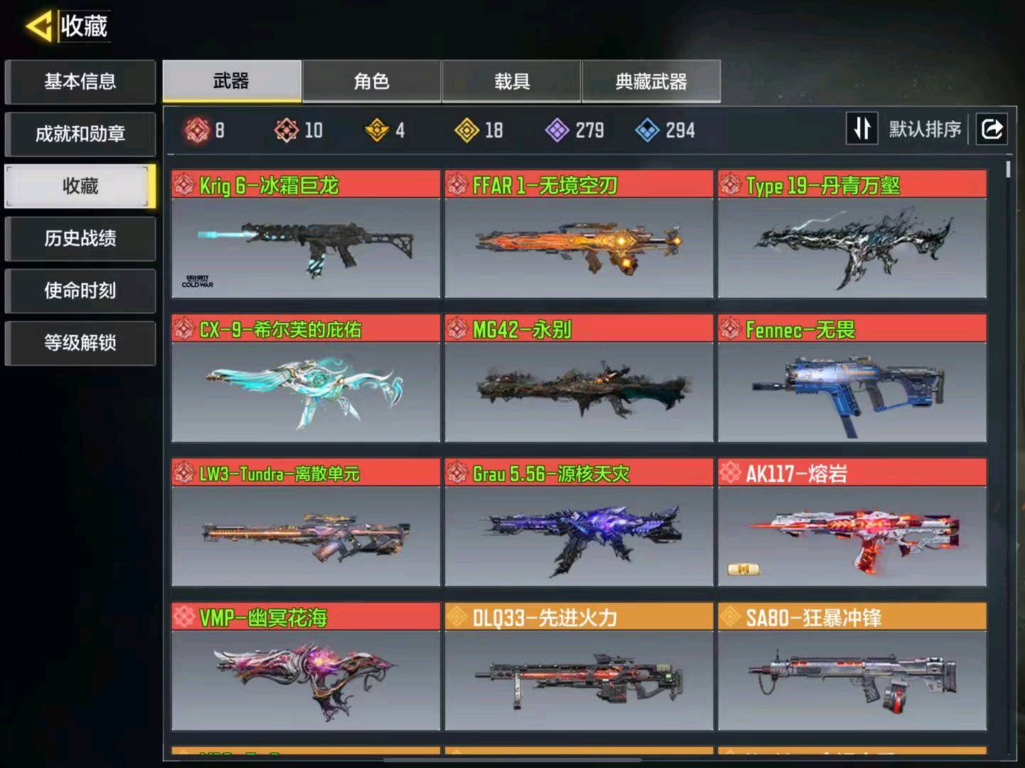 【苹果】 11神话8满级18传说🍎单青万壑/冰霜巨龙/Cx9/无畏/VMP/永别/唐刀/巨擎涡轮先进火力幽灵