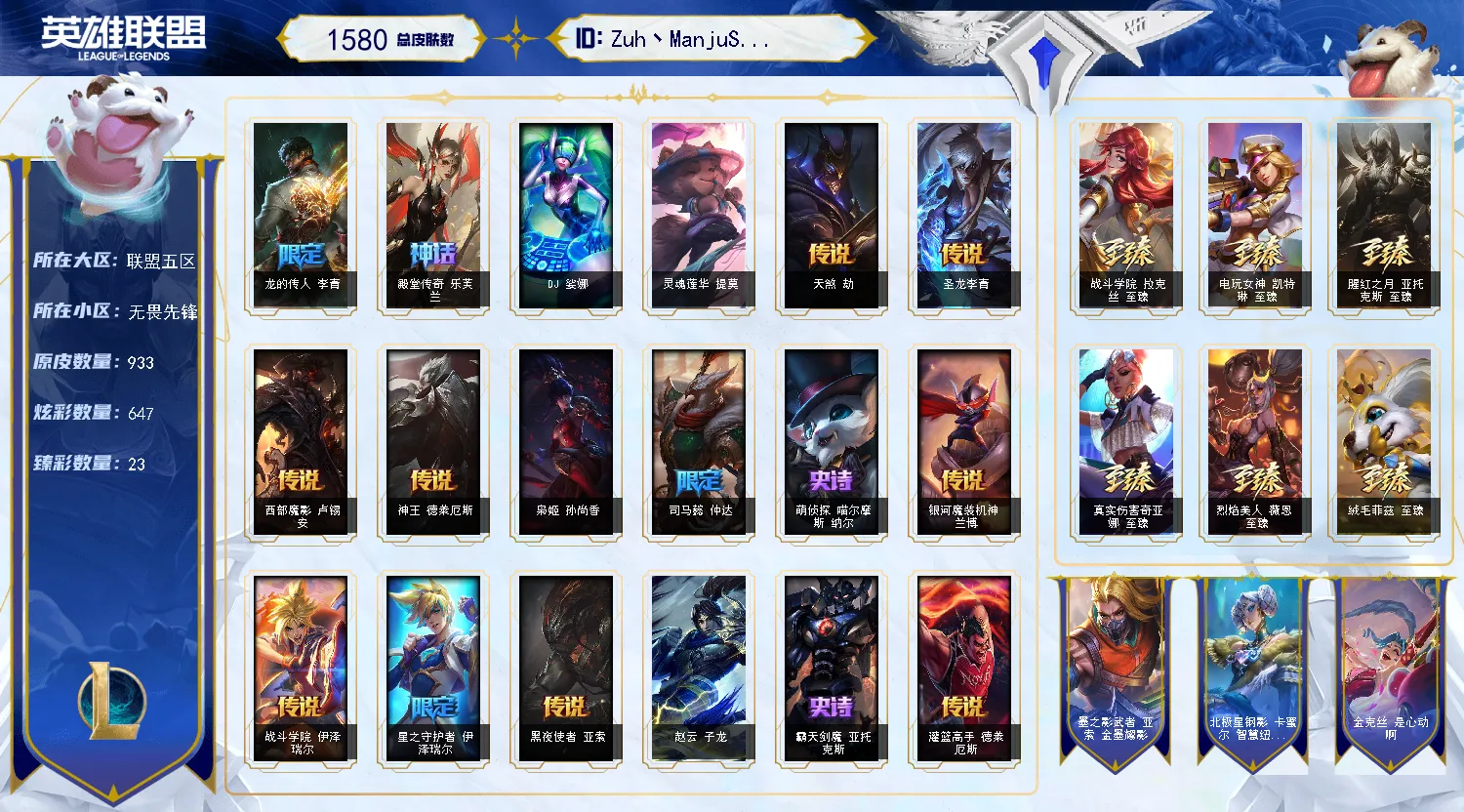 【重要皮肤】人工智能悠米至臻 至高天凯尔至臻 天龙之子伊泽瑞尔至臻 神龙尊者比翼之龙洛至臻 DRX亚托克斯至臻 星之守护者艾克至臻 月蚀骑士赛娜至臻 神凰行者烈羽焰凰霞至臻 女帝黛安娜至臻 魔女婕拉至臻 奥术师佐伊至臻 真实伤害亚索至臻 星之守护者索拉卡至臻 源计划逆流塞拉斯至臻 王国机神玄武盖伦至臻 KDA二代卡莎至臻 KDA伊芙琳至臻 KDA阿卡丽至臻 战斗学院拉克丝至臻 战斗学院拉克丝2022至臻 烈焰美人薇恩至臻 烈焰美人薇恩2022至臻 电玩女神凯特琳至臻 电玩女神凯特琳2022至臻 星之守护者妮蔻至臻 星之守护者妮蔻2022至臻 源计划正义艾瑞莉娅至臻 源计划正义艾瑞莉娅2022至臻 真实伤害奇亚娜至臻 真实伤害奇亚娜2022至臻 绒毛菲兹至臻 绒毛菲兹2022至臻 玉剑传说武剑仙至臻 玉剑传说武剑仙2022至臻 腥红之月亚托克斯至臻 腥红之月亚托克斯2022至臻 黑夜使者李青至臻 黑夜使者李青2022至臻 殿堂传奇乐芙兰 水晶巫灵泽拉斯 海克斯科技安妮 海克斯科技雷克顿 海克斯科技克格莫 海克斯科技斯维因 海克斯科技嘉文四世 新卧虎藏龙贾克斯 水晶掠夺者卡兹克 水晶圣骑塔莉垭 恐惧新星德莱厄斯 零之枪骑赫卡里姆 摄魂使者薇恩 新创战纪希维尔 青年瑞兹 胜利剑圣易 胜利女神娑娜 胜利女神希维尔 胜利之王泰达米尔 舞会公主安妮 创星之灵璐璐 生化领主泰达米尔 荣誉使者玛尔扎哈 勇敢的心德莱厄斯 电玩女神厄运小姐 电玩勇者锐雯 电玩女神阿狸 星之守护者伊泽瑞尔 玉剑传说舞龙卫 龙的传人李青 银龙裁决泰隆 天龙之子斯莫德 替父从军花木兰 神龙烈焰金克丝 美猴王孙悟空 玉净夜叉凯特琳 广寒仙子嫦娥 虎痴之拳蔚 司马懿仲达 金猪烈焰瑟庄妮 胜利女神瑟庄妮 胜利之树茂凯 胜利机器人布里茨 胜利女神奥莉安娜 胜利枪神格雷福斯 胜利枪神卢锡安 胜利之剑亚托克斯 水晶玫瑰迦娜 觅心之翼奎因 觅心萝莉金克丝 觅心猎手薇恩 北极星神黛安娜 北极星守望者佐伊 北极星圣贤基兰 圣诞捣蛋鬼金克丝 圣诞老人德莱文 冰雪女神辛德拉 魄罗骑士瑟庄妮 平安夜女神娑娜 圣诞糖果棒厄运小姐 魅惑女巫崔丝塔娜 魅惑女巫奈德丽 死亡誓约卡特琳娜 灵魂收割者索拉卡 泳池派对佐伊 泳池派对奥莉安娜 泳池派对塔莉垭 泳池派对塔里克 泳池派对格雷福斯 泳池派对雷克顿 泳池派对布隆 斩星魔剑易 御星魔矢艾希 制胜金靴李青 EDG格雷福斯 SSG霞 SKTT1扎克 SKTT1烬 SKTT1辛德拉 SKTT1瑞兹 SKTT1阿兹尔 SKTT1伊莉丝 SKTT1雷克顿 SSW锤石 SSW雷恩加尔 SSW泰隆 SSW图奇 SSW辛吉德 SKTT1劫 暗杀星奥莉安娜 暗杀星蒙多 暗杀星努努和威朗普 Fnatic迦娜 Fnatic库奇 Fnatic古拉加斯 Fnatic嘉文四世 Fnatic卡尔萨斯 冰雪节格雷福斯 冰雪节辛吉德 防暴机器人布里茨 防暴士兵格雷福斯 防暴士兵辛吉德 防暴天使凯尔 钢铁之翼艾尼维亚 冠军典狱长锤石 冠军之矛卡莉丝塔 冠军之隐劫 鬼影森森茂凯 鬼影重重魔腾 红桃杰克崔斯特 胡桃夹子萨科 惊悚派对阿木木 警用试作体K9内瑟斯 密林猎手提莫 南瓜头费德提克 圣诞精灵崔丝塔娜 圣诞开心鬼提莫 圣诞狂欢基兰 圣诞狂欢努努和威朗普 圣诞老人古拉加斯 圣诞玩偶波比 圣诞驯鹿克格莫 外星装甲库奇 卧虎藏龙贾克斯 无头骑士赫卡里姆 喜庆之树茂凯 邪恶圣诞老人维迦 幸福女神乐芙兰 雪默丁格 野兽猎人德莱文 野兽猎人泰达米尔 英勇玩具兵普朗克 征服者诺提勒斯 征服者韦鲁斯 暗影沃里克 机械迷城加里奥 阿木木主人不要我了 波比的巧克力工坊 都铎王朝图奇 十五周年纪念希维尔 十周年纪念安妮 源代码乐芙兰 神凰行者瑞羽圣凰艾尼维亚 胜利凤凰艾尼维亚 暗裔英雄盖伦 DJ娑娜 灵魂守卫乌迪尔 绝息圣堂洛