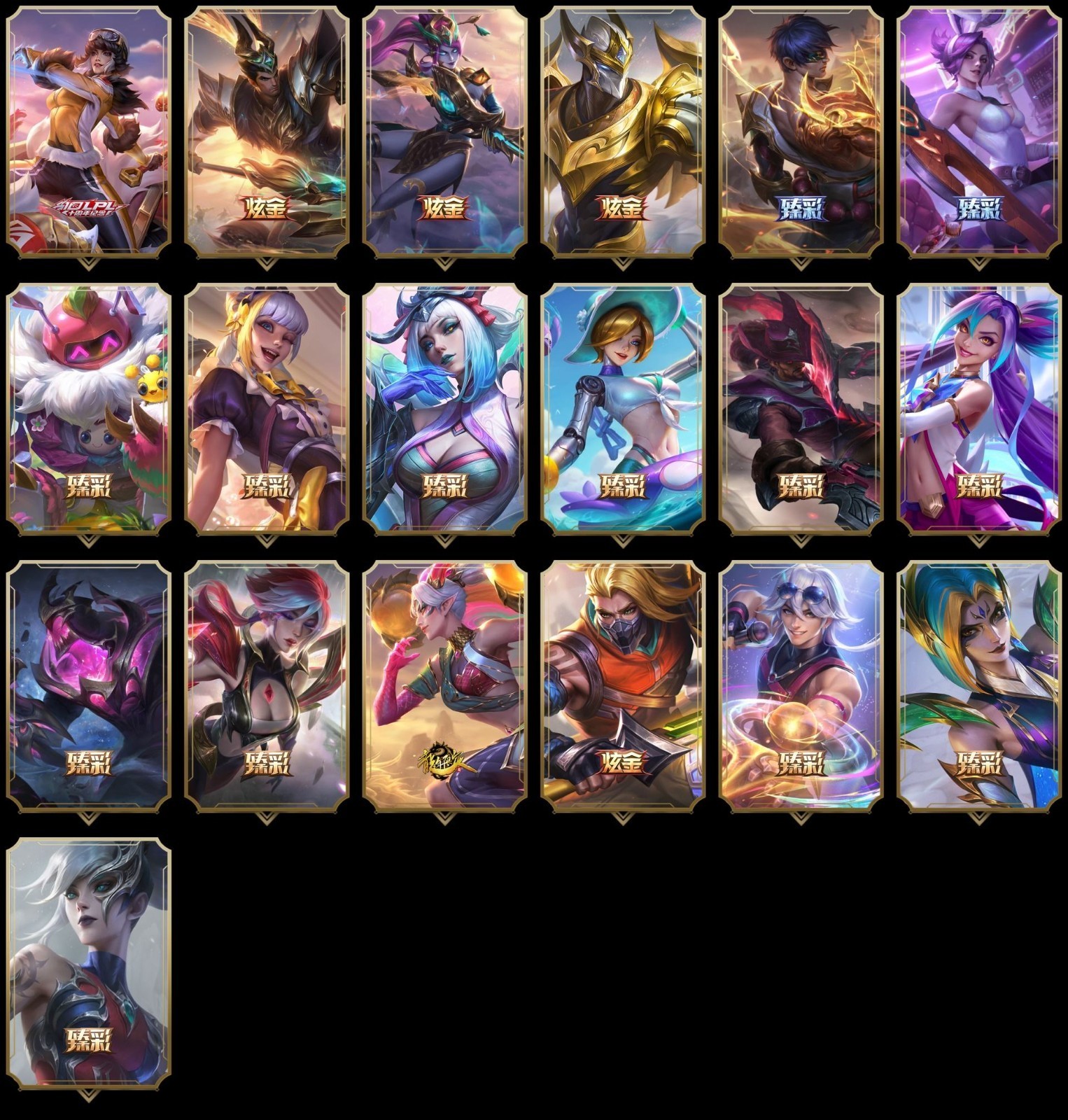 【重要皮肤】黑色玫瑰假面舞会卡特琳娜至臻 双城之战2指挥官凯特琳至臻 狼神英灵斯维因至臻 暗星女王黛安娜至臻 魔域梦魇泽丽至臻 天龙之子伊泽瑞尔至臻 心之钢永恩至臻 魂蔷薇烈娜塔至臻 墨之影武者亚索至臻 至高天奎桑提至臻 灵魂莲华易至臻 青花瓷拉克丝至臻 魅惑女巫莫甘娜至臻 女帝黛安娜至臻 战斗学院蕾欧娜至臻 真实伤害亚索至臻 真实伤害赛娜至臻 星之守护者索拉卡至臻 灵魂莲华提莫至臻 灵能特工伊泽瑞尔至臻 福牛守护者菲奥娜至臻 源计划阴劫至臻 王国机神玄武盖伦至臻 暗星墨菲特至臻 神龙尊者炎龙瑟提至臻 黑夜使者凯隐至臻 神龙尊者均衡之龙沃利贝尔至臻 焰执事布兰德至臻 KDA二代卡莎至臻 KDA一代卡莎至臻 KDA阿狸至臻 KDA阿卡丽至臻 烈焰美人薇恩至臻 烈焰美人薇恩2022至臻 电玩女神凯特琳至臻 电玩女神凯特琳2022至臻 魅惑女巫厄运小姐至臻 源计划正义艾瑞莉娅至臻 源计划正义艾瑞莉娅2022至臻 绒毛菲兹至臻 玉剑传说武剑仙至臻 玉剑传说武剑仙2022至臻 腥红之月亚托克斯至臻 腥红之月亚托克斯2022至臻 未来战士锤石至臻 未来战士锤石2022至臻 黑夜使者李青至臻 黑夜使者李青2022至臻 殿堂传奇乐芙兰 水晶巫灵泽拉斯 灰烬守护者慎 灰烬骑士派克 海克斯科技吉格斯 海克斯科技嘉文四世 海克斯科技阿木木 海克斯科技崔丝塔娜 新卧虎藏龙贾克斯 水晶泰坦诺提勒斯 水晶掠夺者卡兹克 水晶圣骑艾希 恐惧新星德莱厄斯 胜利剑圣易 胜利女神娑娜 胜利之王泰达米尔 胜利巨口克格莫 养蜂人辛吉德 勇敢的心德莱厄斯 电玩女神厄运小姐 电玩勇者锐雯 星之守护者伊泽瑞尔 玉剑传说无影 女帝厄运小姐 玉剑传说舞龙卫 灵能特工易 点心宝贝阿木木 天龙之子斯莫德 天龙之子易 龙腾虎跃瑟提 猛虎下山赵信 虎痴之拳蔚 张辽文远 王国机神苍狼瑟提 胜利女神瑟庄妮 胜利机器人布里茨 胜利女神奥莉安娜 胜利枪神格雷福斯 胜利枪神卢锡安 怦然心动凯特琳 双城之战2微光实验室辛吉德 圣诞捣蛋鬼金克丝 冰雪驯鹿波比 持胡萝卜的雪人易 魄罗骑士瑟庄妮 平安夜女神娑娜 魅惑女巫崔丝塔娜 魅惑女巫奈德丽 死亡誓约维克托 勇敢的心德莱厄斯 海之歌艾希 泳池派对凯特琳 泳池派对佐伊 泳池派对奥莉安娜 泳池派对黑默丁格 泳池派对塔莉垭 泳池派对塔里克 泳池派对格雷福斯 泳池派对李青 泳池派对蕾欧娜 泳池派对瑟提 电玩战魂赫卡里姆 送披萨的小姐姐希维尔 制胜金靴李青 EDG佛耶戈 iG洛 iG卡莎 iG艾瑞莉娅 SSG洛 SSG纳尔 SKTT1烬 SKTT1辛德拉 SKTT1阿利斯塔 SKTT1瑞兹 SKTT1阿兹尔 SKTT1伊莉丝 SSW雷恩加尔 SSW泰隆 SSW图奇 SSW辛吉德 SKTT1贾克斯 SKTT1劫 SKTT1婕拉 SKTT1李青 暗杀星蒙多 暗杀星慎 Fnatic迦娜 Fnatic库奇 Fnatic古拉加斯 Fnatic嘉文四世 Fnatic卡尔萨斯 冰雪节辛吉德 防暴机器人布里茨 防暴士兵格雷福斯 防暴士兵辛吉德 防暴天使凯尔 钢铁之翼艾尼维亚 冠军典狱长锤石 冠军掠夺者卡兹克 冠军之矛卡莉丝塔 冠军之血希瓦娜 冠军之隐劫 冠军之志瑞兹 鬼影森森茂凯 鬼影重重魔腾 胡桃夹子萨科 警用试作体K9内瑟斯 破空枪骑孙悟空 圣诞精灵崔丝塔娜 圣诞老人古拉加斯 圣诞驯鹿克格莫 糖果使徒费德提克 卧虎藏龙贾克斯 无头骑士赫卡里姆 幸福女神乐芙兰 雪默丁格 野兽猎人瑟庄妮 野兽猎人泰达米尔 英勇玩具兵普朗克 勇者阿狸 征服者卡尔玛 征服者韦鲁斯 暗影沃里克 机械迷城加里奥 魅惑女巫菲奥娜 2023全球总决赛雷克顿 2022全球总决赛阿兹尔 波比的巧克力工坊 都铎王朝图奇 十五周年纪念希维尔 十周年纪念安妮 源代码乐芙兰 神凰行者瑞羽圣凰艾尼维亚 胜利凤凰艾尼维亚 斗魂觉醒佛耶戈 未来战士伊泽瑞尔 绝息圣堂洛