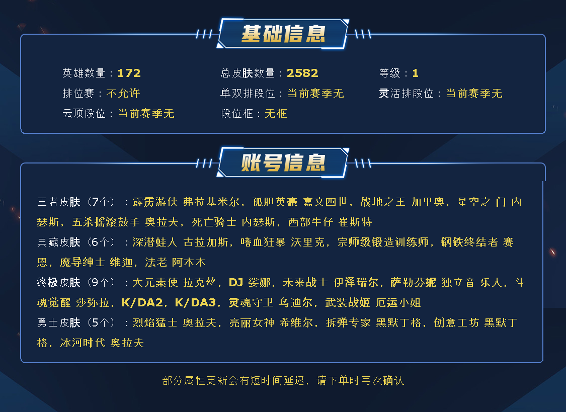 艾欧尼亚原皮1700/️全英雄可下棋可排位/不朽卡莎名人堂阿狸/2圣堂/9终极️/144神话至臻/
