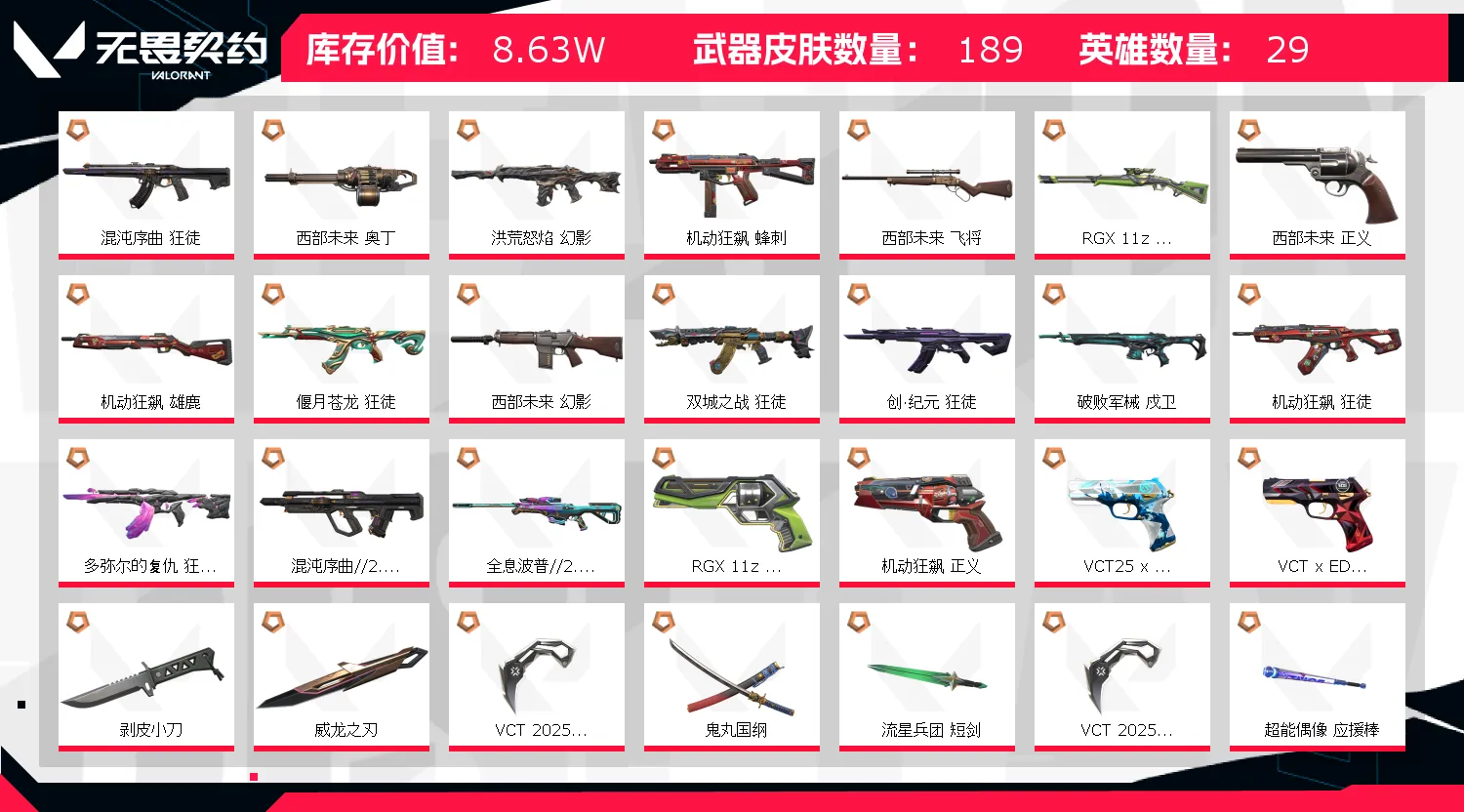 - 武器皮肤数量: 189