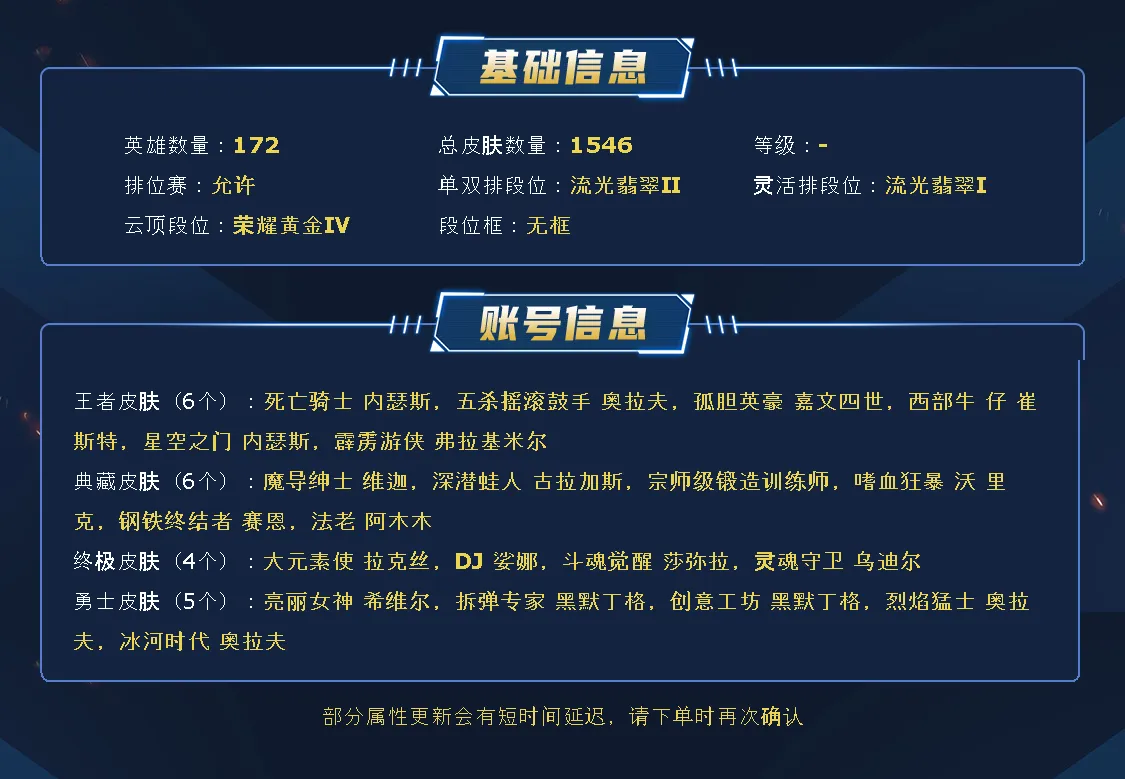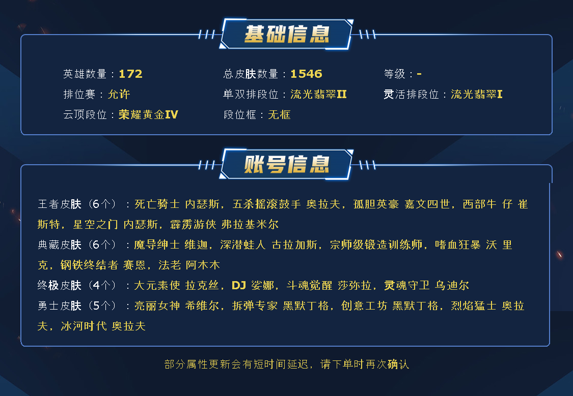 ~~喜欢记得收藏~~可排位~~1600皮全英雄~~租之前尽量查一下游戏ID,确保段位是您需要的,避免浪费您的时间~~请勿挂机逃跑故意送人头,谢谢合作,谢谢~~