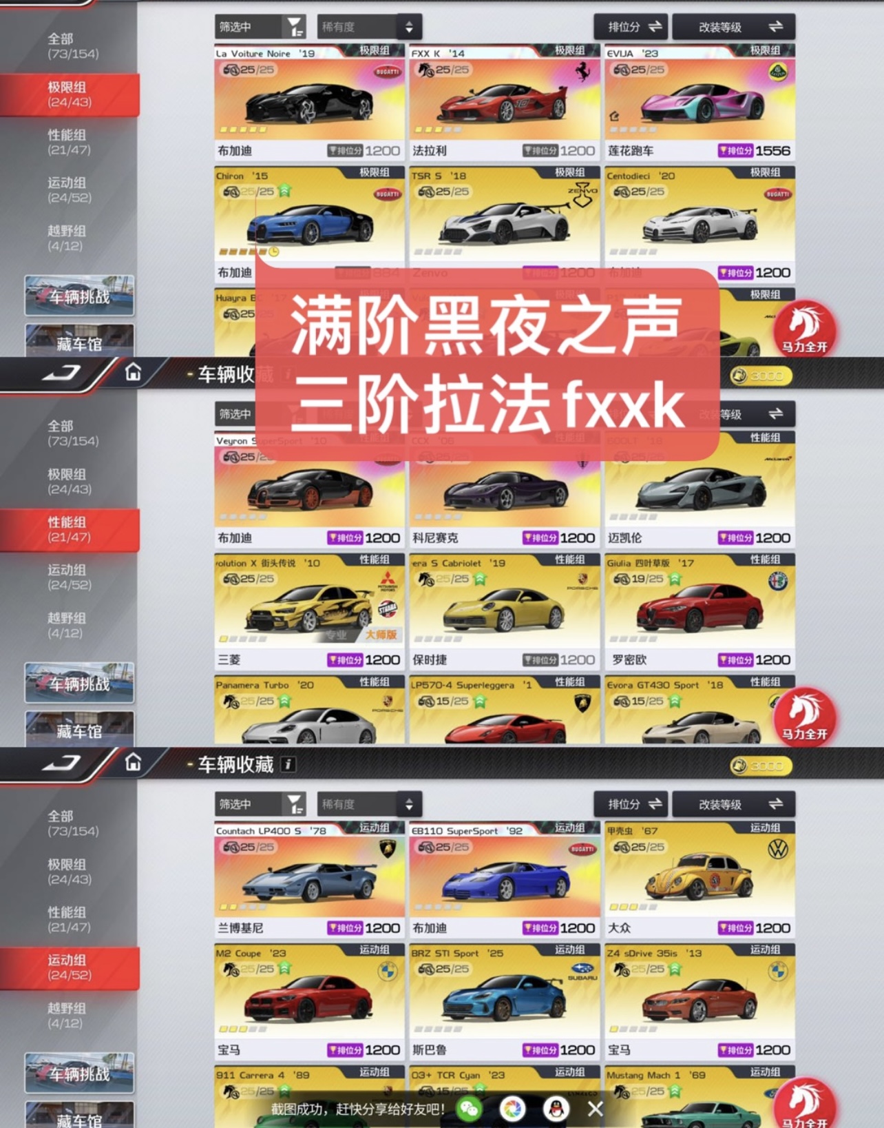 【苹果】 最新极限双神✅满阶布加迪/黑夜之声/三阶法拉利fxxk