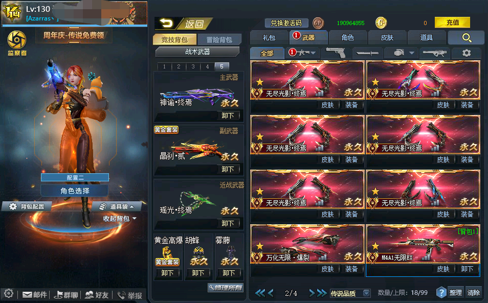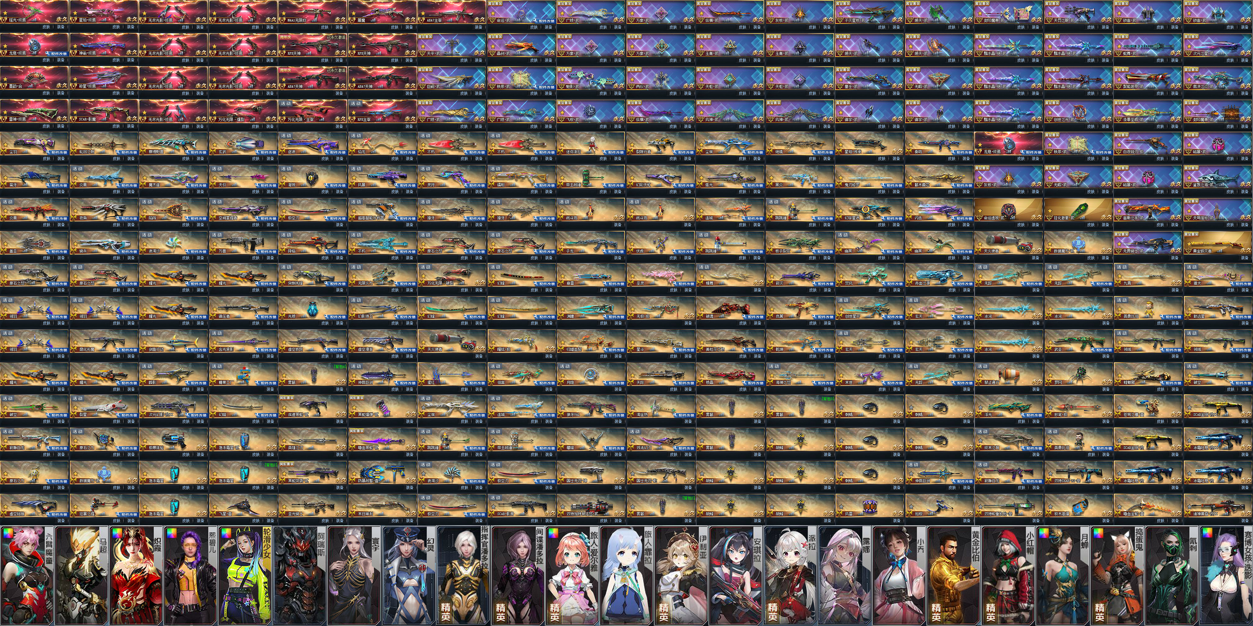 传说武器:万化无限主宰◆瑶光终焉(翡翠)◆星珀终焉(阿盖尔)◆RPK主宰◆龙息终焉(东极)◆神谕终焉(紫晶)◆AK47主宰◆墨韵合(春夏秋冬)◆碎星终焉(时空旅人)◆雷神终焉◆SCAR-影魔(黄金国未央)◆无尽光影终焉X7(深渊之海次元战争)◆M4A1无限EX(金蛇紫水晶)◆屠魔(御雷)◆AK47天神 X2◆RPK天神X2◆万化无限爆裂