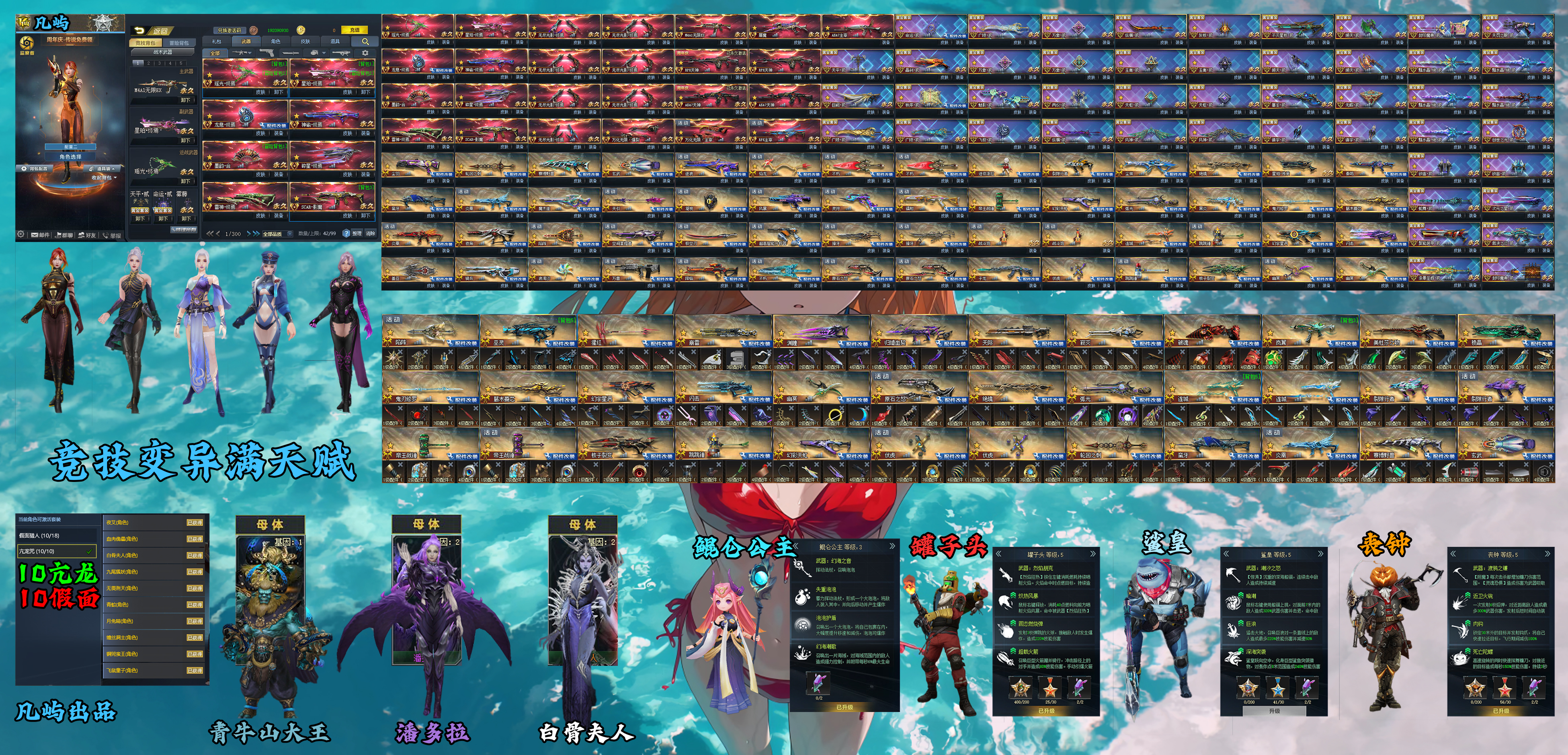 普通人物:寰宇幻灵 满天赋魔童 满天赋阿瑞斯 满天赋赛博女孩 满天赋小红帽 洛神 双阵营潘多拉 赤焰皮