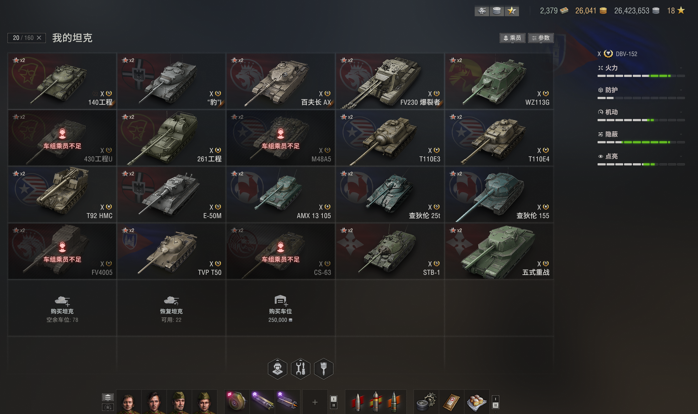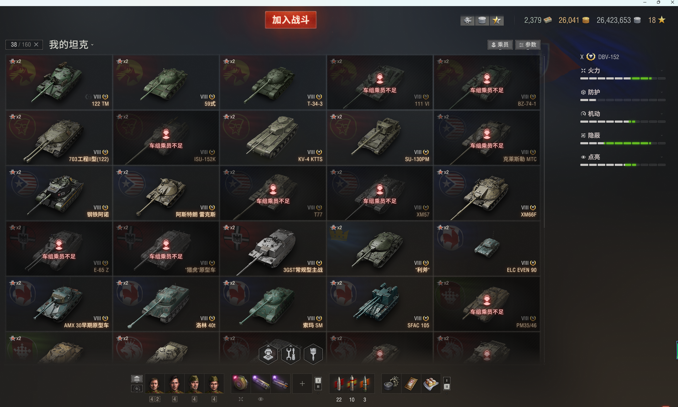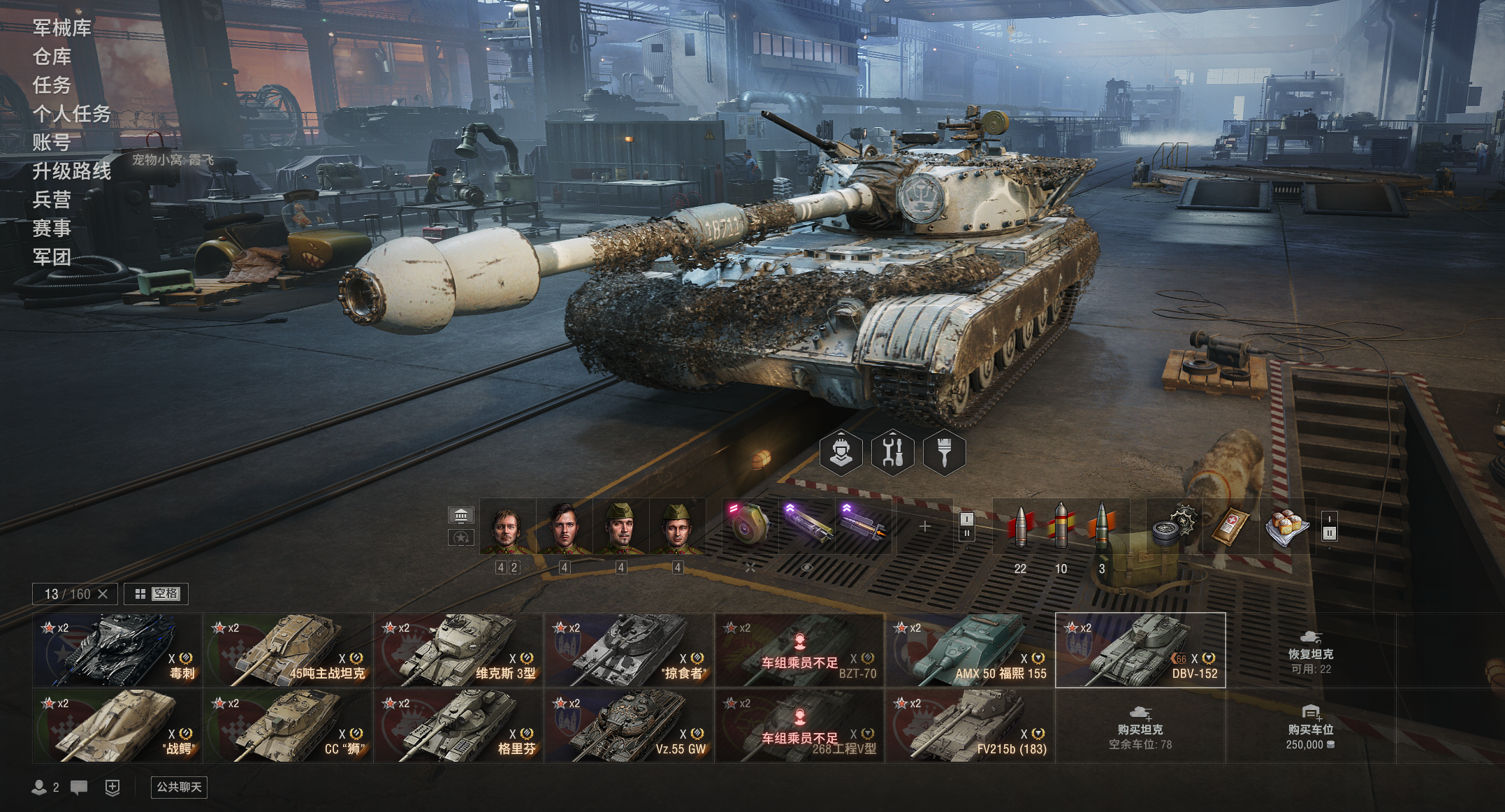 注意事项:1,进入游戏后,如果车辆情况不符。那是因为前面的玩家筛选了自己玩的坦克,其他的隐藏了。坦克显示栏,左下角小坦克标志,点进去把所有系别和级别选上,坦克就全部出来了。