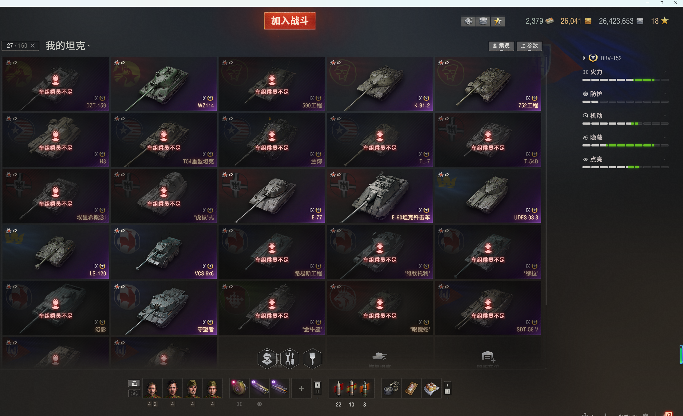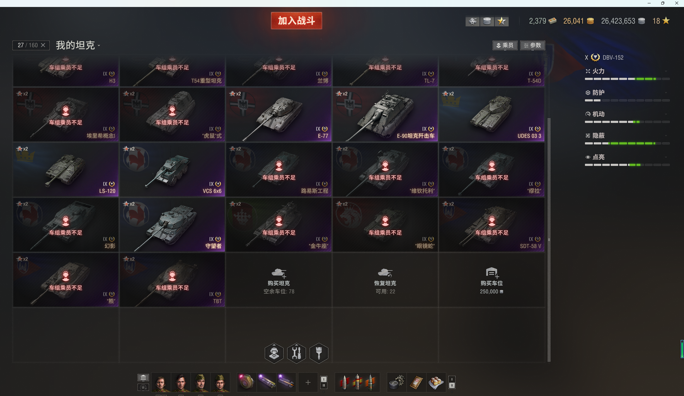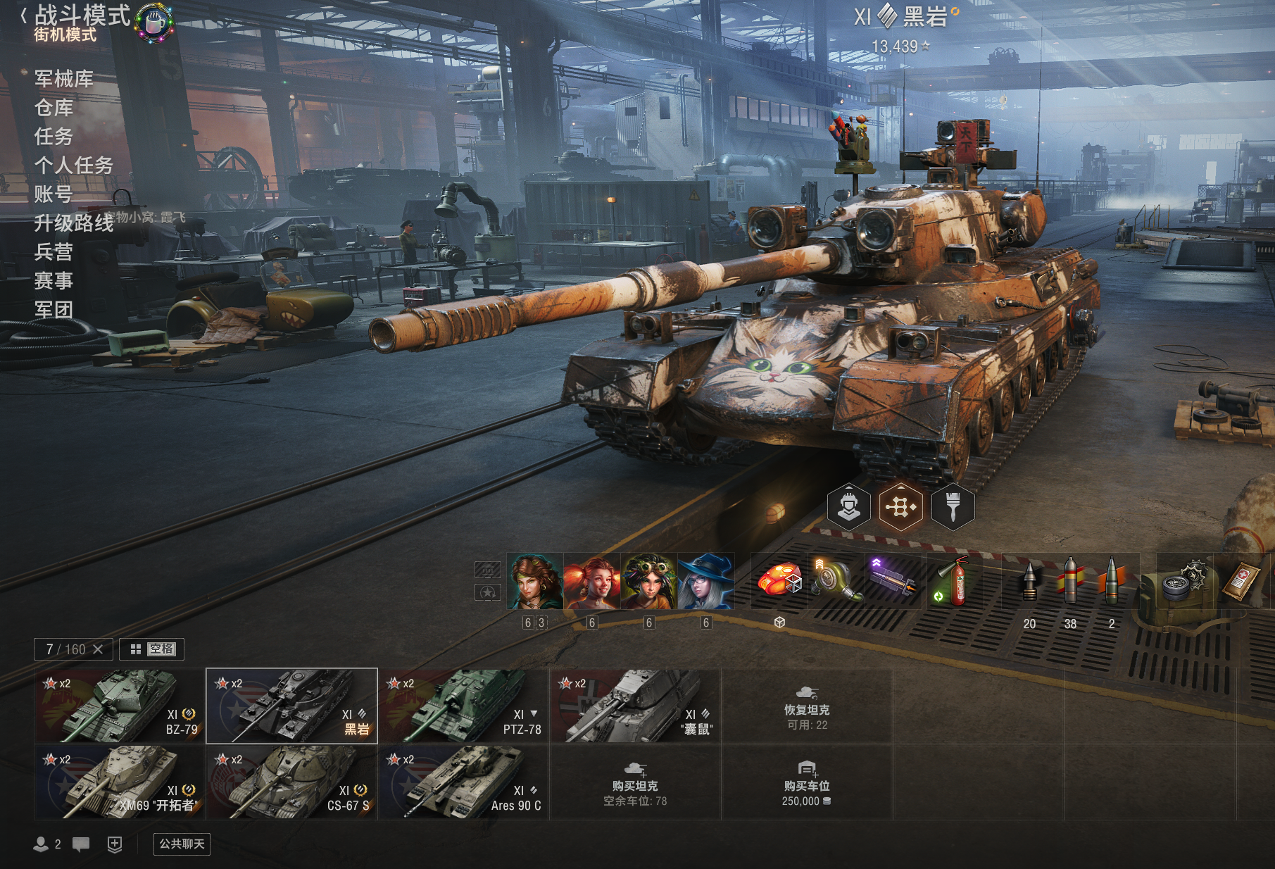 注意事项:1,进入游戏后,如果车辆情况不符。那是因为前面的玩家筛选了自己玩的坦克,其他的隐藏了。坦克显示栏,左下角小坦克标志,点进去把所有系别和级别选上,坦克就全部出来了。
