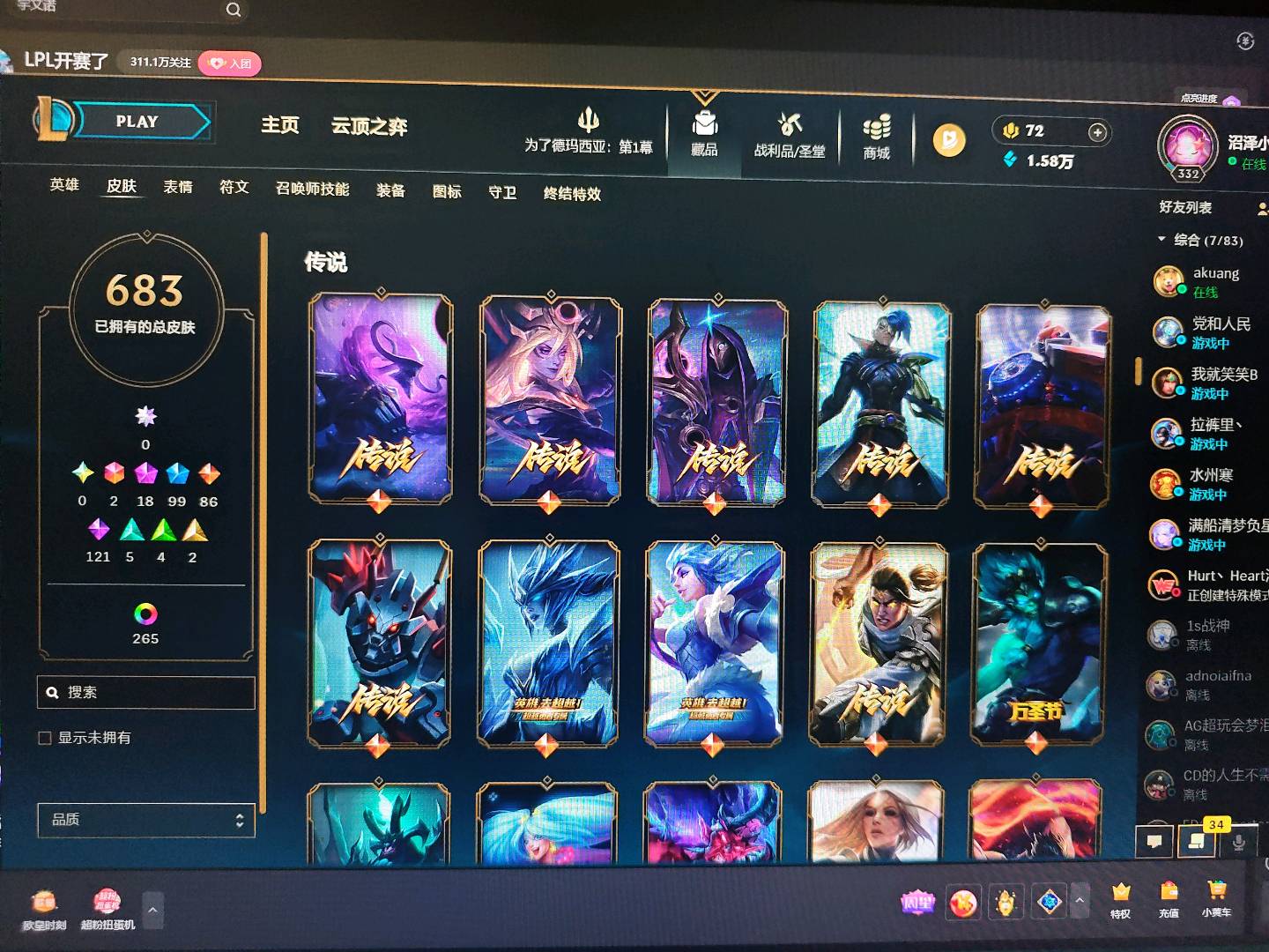 - 神话皮肤数量: 18