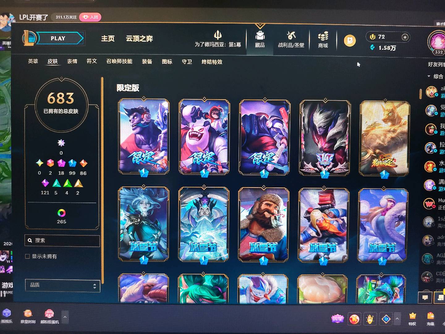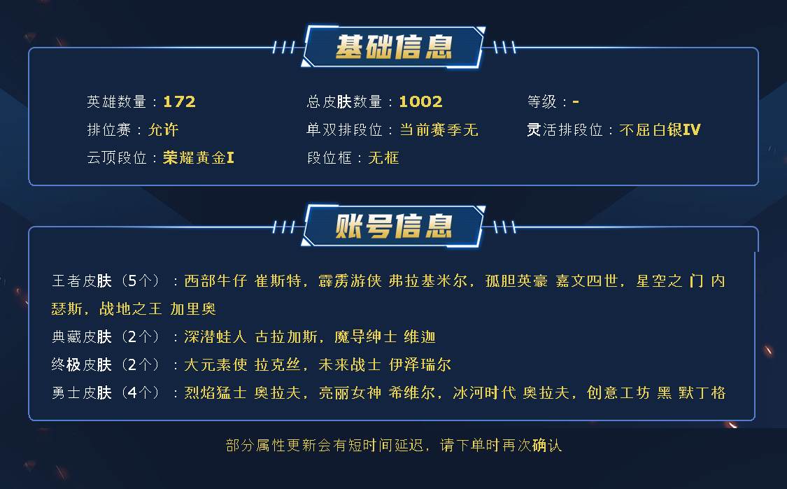 艾欧尼亚 全英雄排位炸鱼号 单双排黑铁隐藏分 灵活组排青铜白银 总1000皮 高质量皮肤