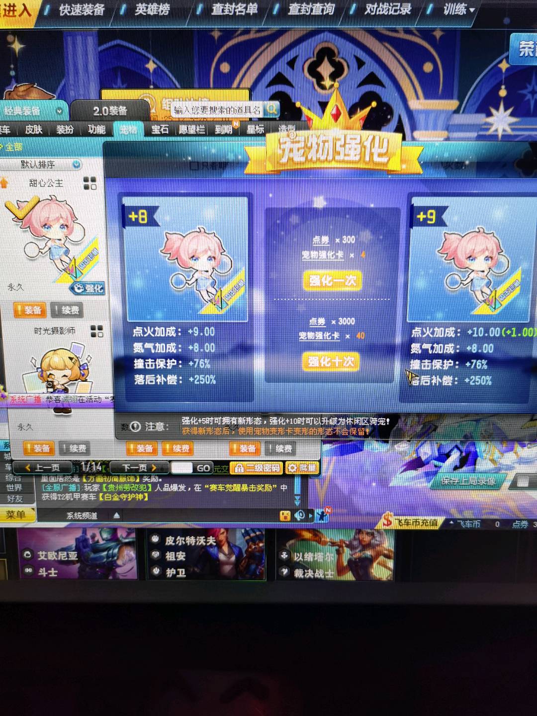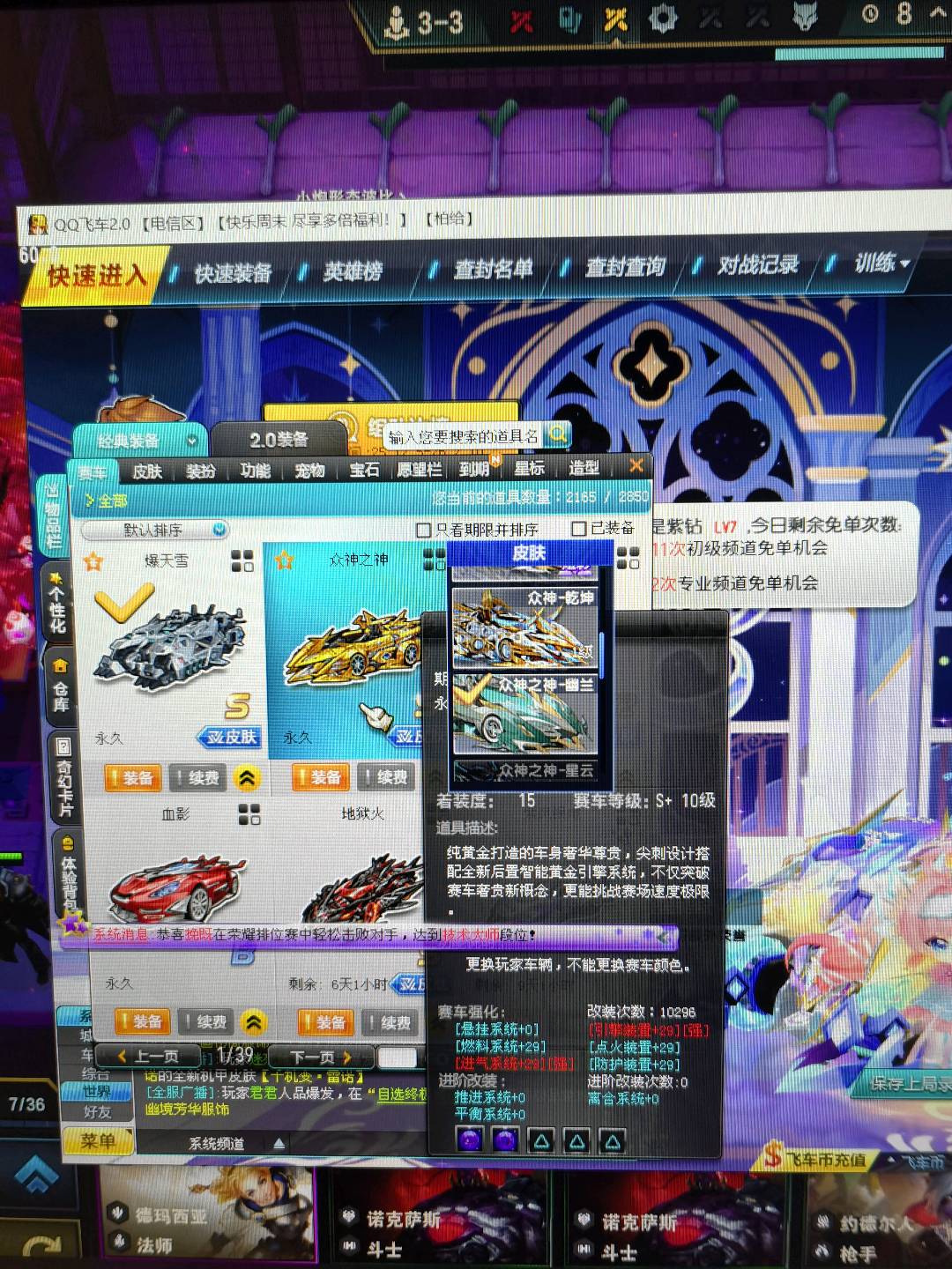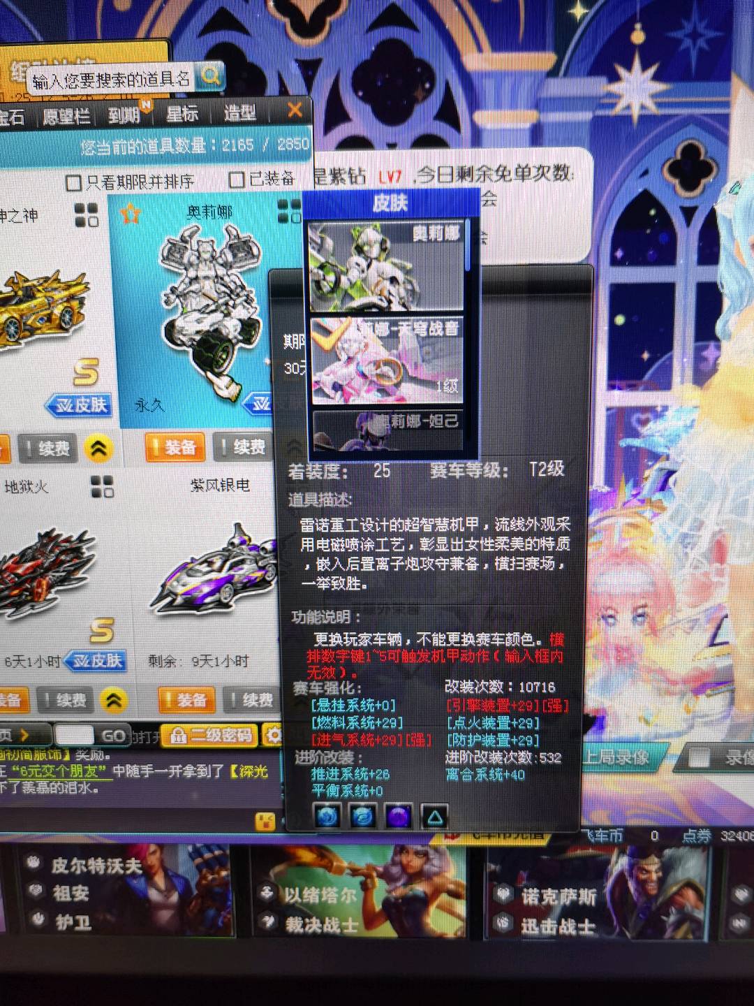 满改双四爆天雪带小雪皮肤(带超级喷),满改众神幽兰,黑域电魔玄冥,奥莉娜。甜心公主强化+8